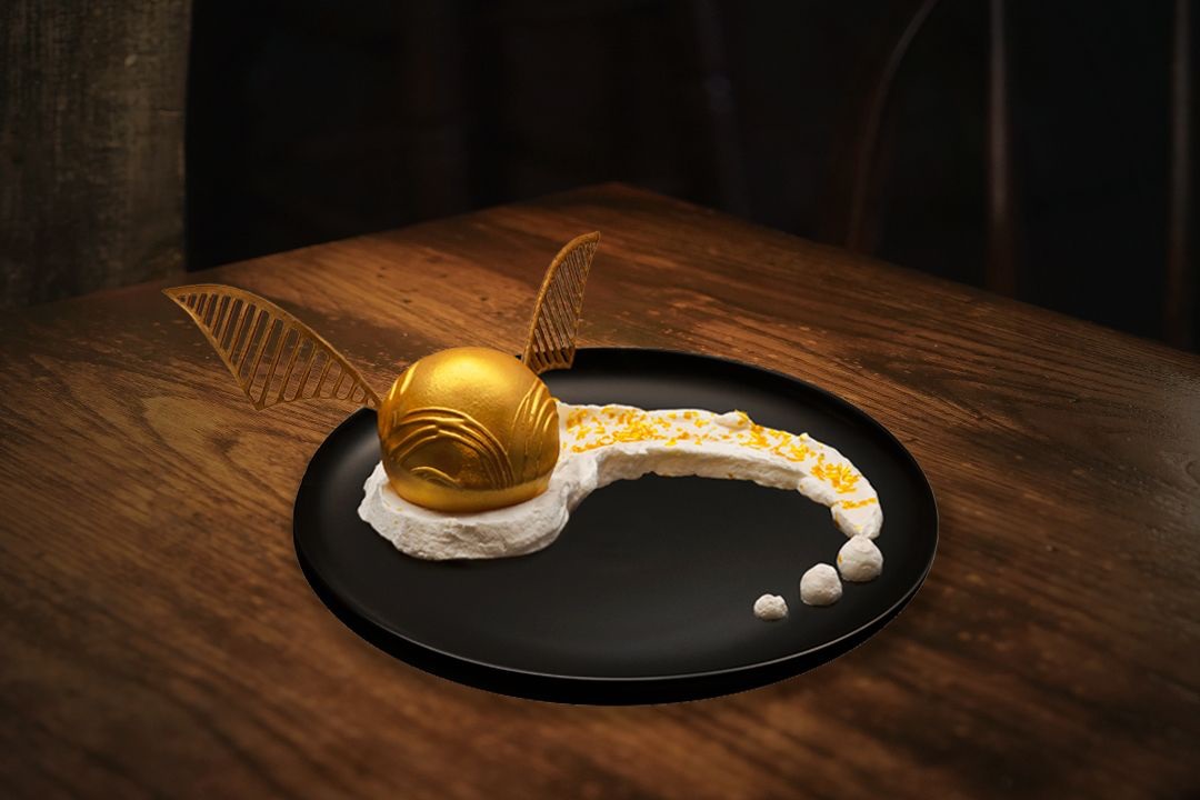 - The Golden Snitch: Vanilla sponge cake, chocolate mousse and orange marmalade topped with honey tuile wings.