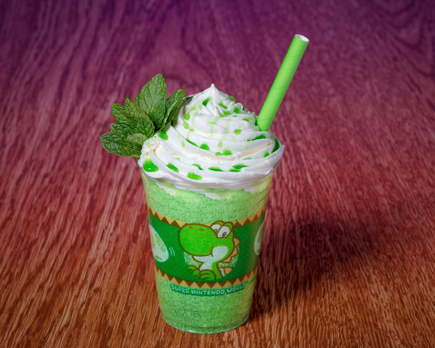 - Yoshi’s Smoothie (Apple Melon): Bursting with the flavors of green apple and honeydew melon with a touch of milk for creaminess and topped with whipped cream, honeydew melon syrup and a mint sprig