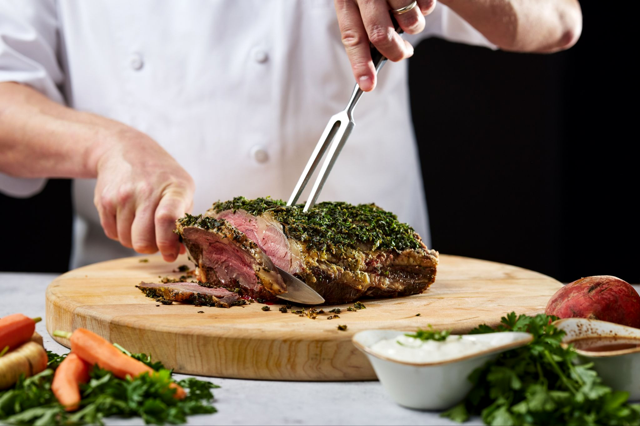 Delight in a selection of freshly prepared and savory dishes including slow-roasted ribeye, made-to-order omelets, artisanal pastries and more. Don’t miss out on a variety of desserts like the eggnog panna cotta and chocolate yule log.