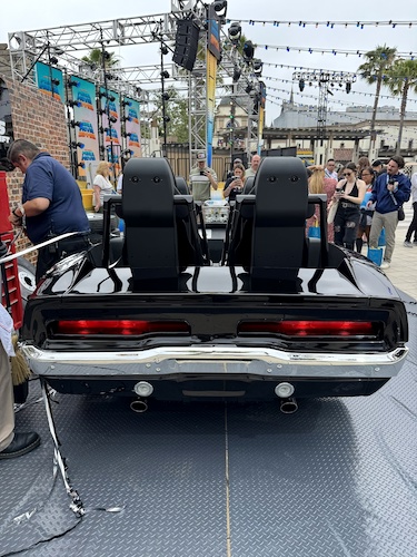 The big news however was what was staged over there underneath that red sheet. That marked the reveal of the new roller coaster ride vehicle for the new Fast & Furious: Hollywood Drift, set to open next year at the park. Fans have long seen the structure for the coaster, including some testing, taking place on the Universal City hillside, but now we know what passengers will be riding in while aboard.