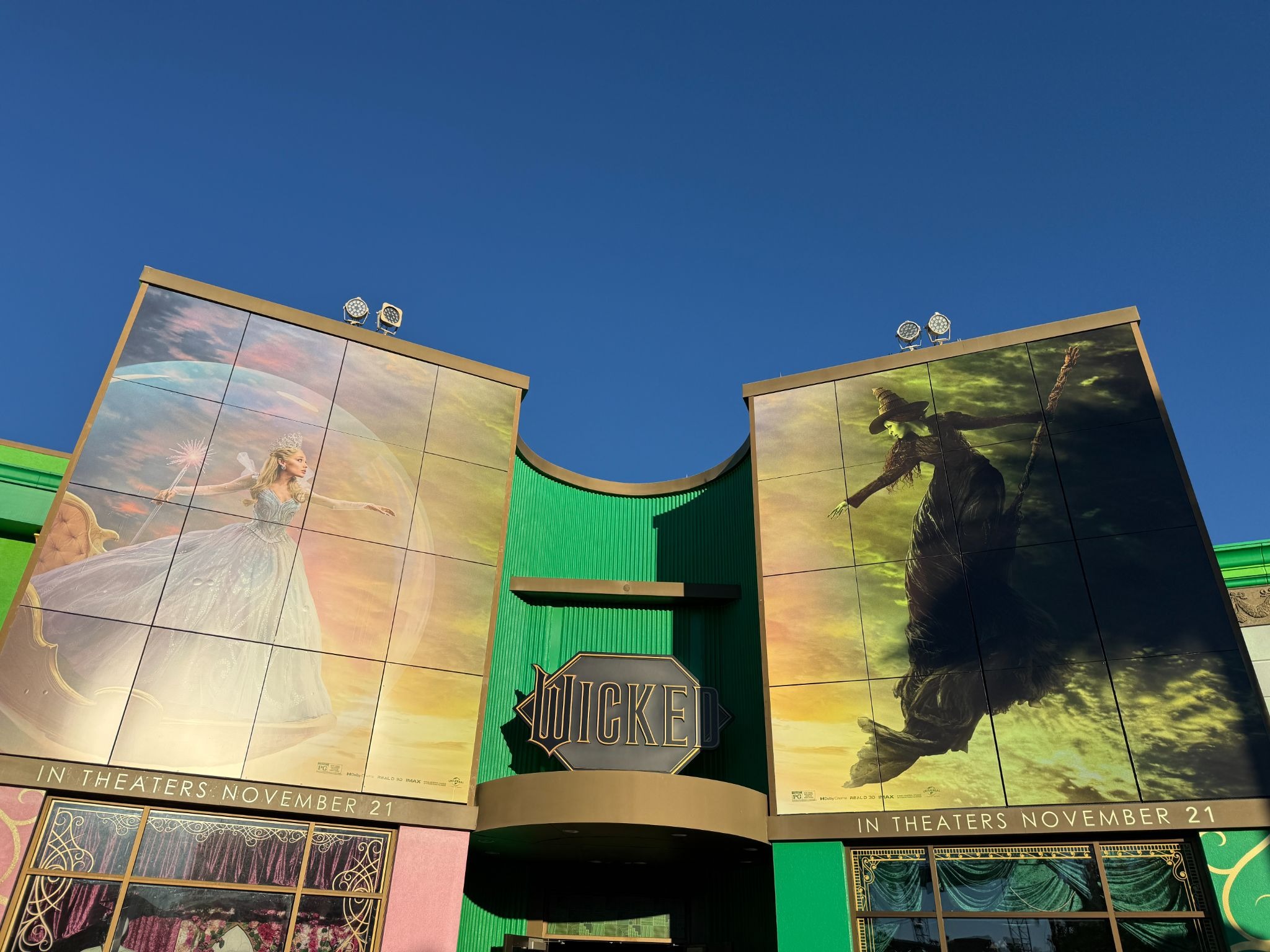 The changes to the exhibit – which first opened last year alongside the debut of the first film – are immediately apparent, as Glinda and Elphaba appear in their new costumes in artwork on the building.