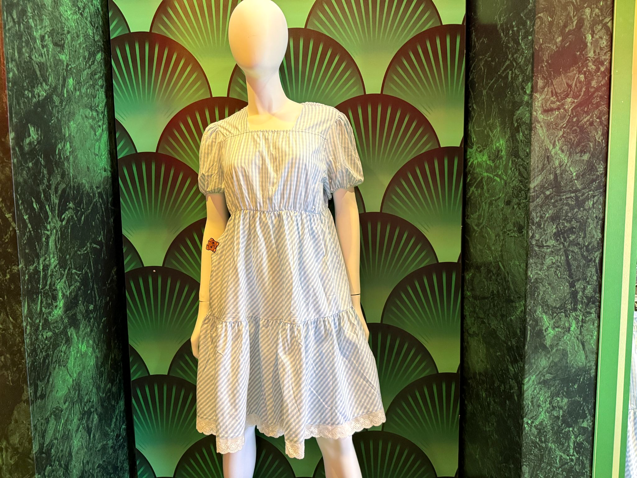 This display features replicas of Glinda and Elphaba’s main costumes from the new film, as it appears we’re following the Yellow Brick Road to the Wizard.