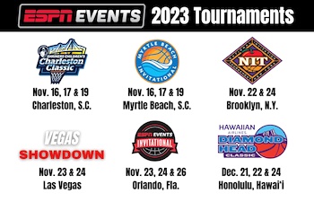 Teams Announced for 6 ESPN Tournaments for 2023-24 College Basketball Season May 11, 2023 12:33 pm (Pacific) Mike Mack
