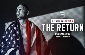 “Chris Weidman: The Return” Debuts December 17th on ESPN Dec 12, 2023 8:49 am (Pacific) Tricia Kennedy