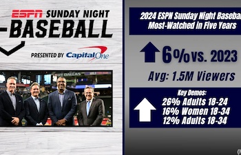 ESPN’s “Sunday Night Baseball” Nets Highest Ratings Since 2019 Sep 24, 2024 7:30 pm (Pacific) Tony Betti