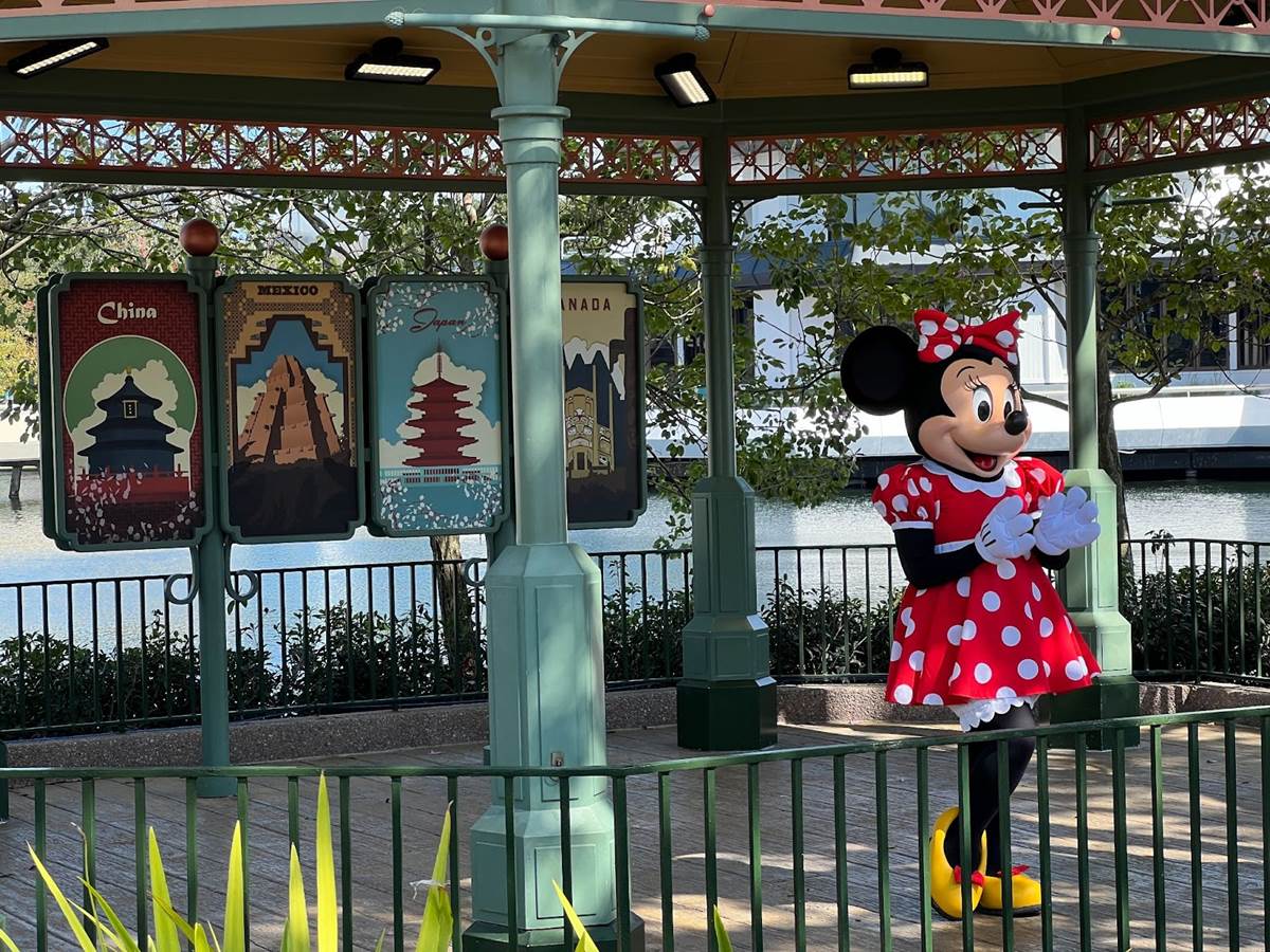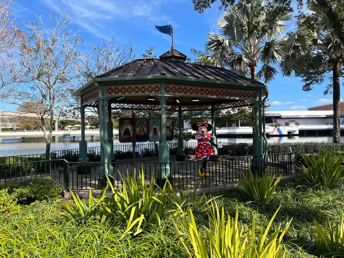 Minnie Mouse can be found at the Gazebo located near the entrance to World Showcase.
