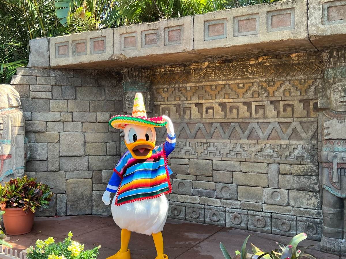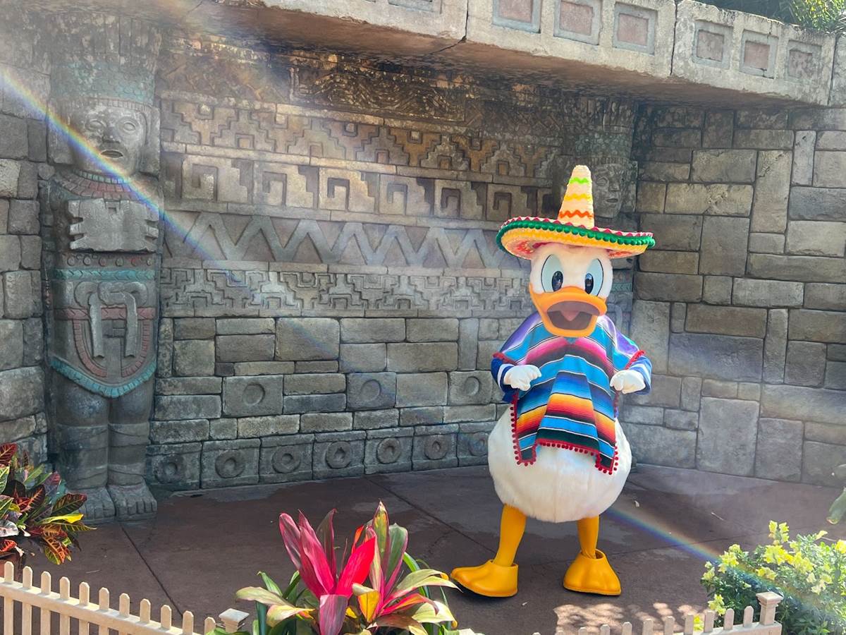 Over at the Mexico pavilion, Donald can be found in his costume from The Three Caballeros.