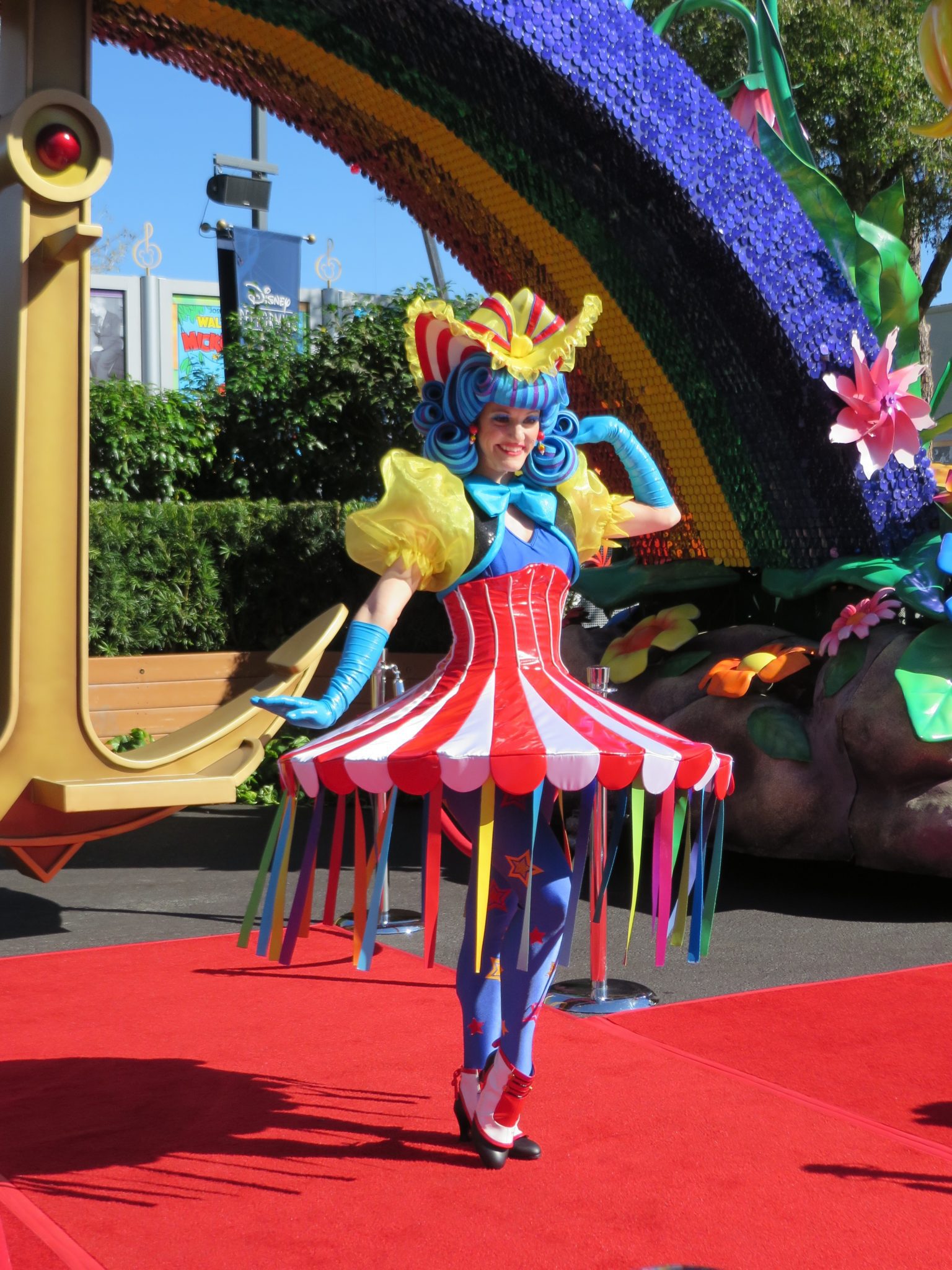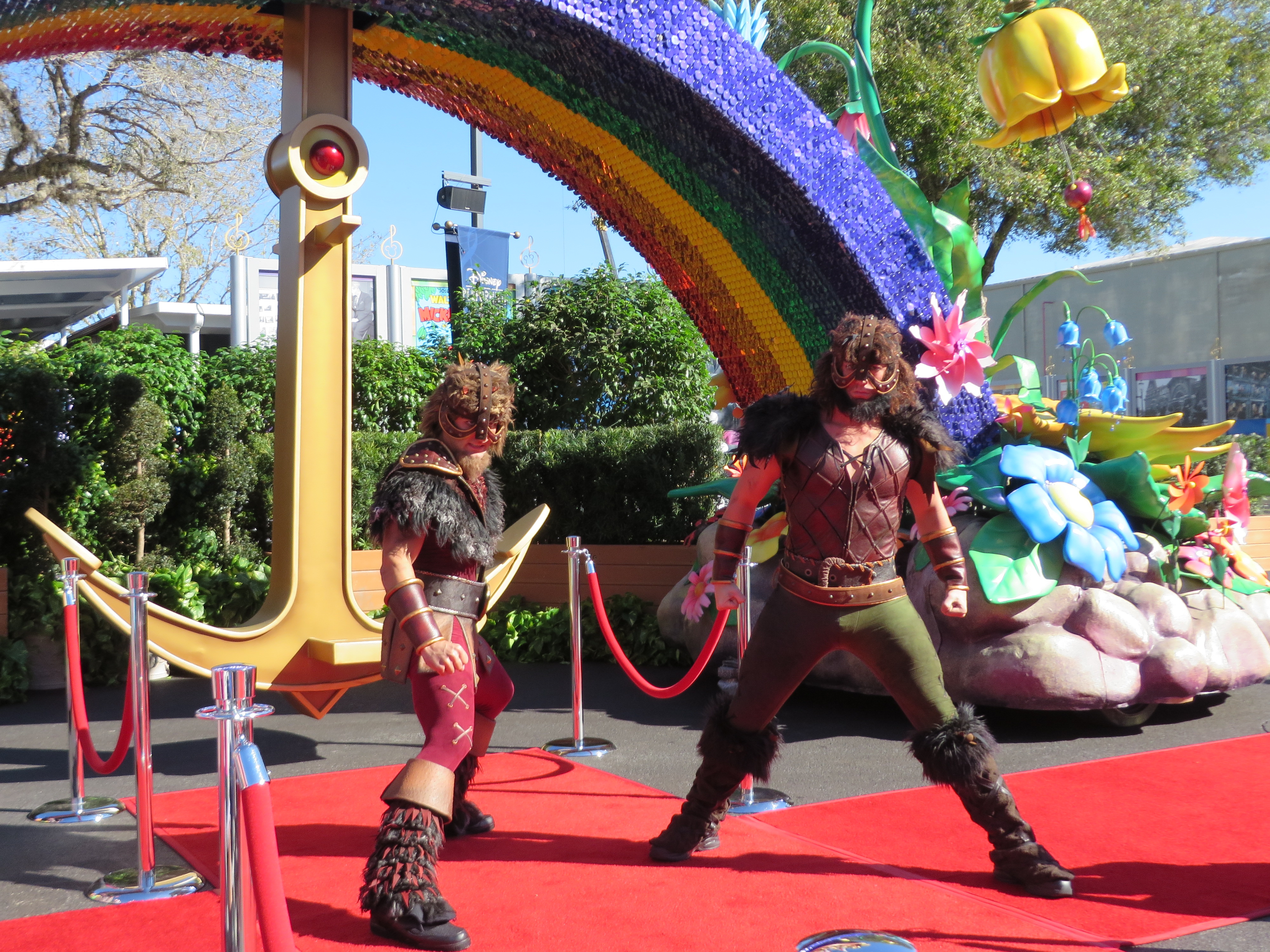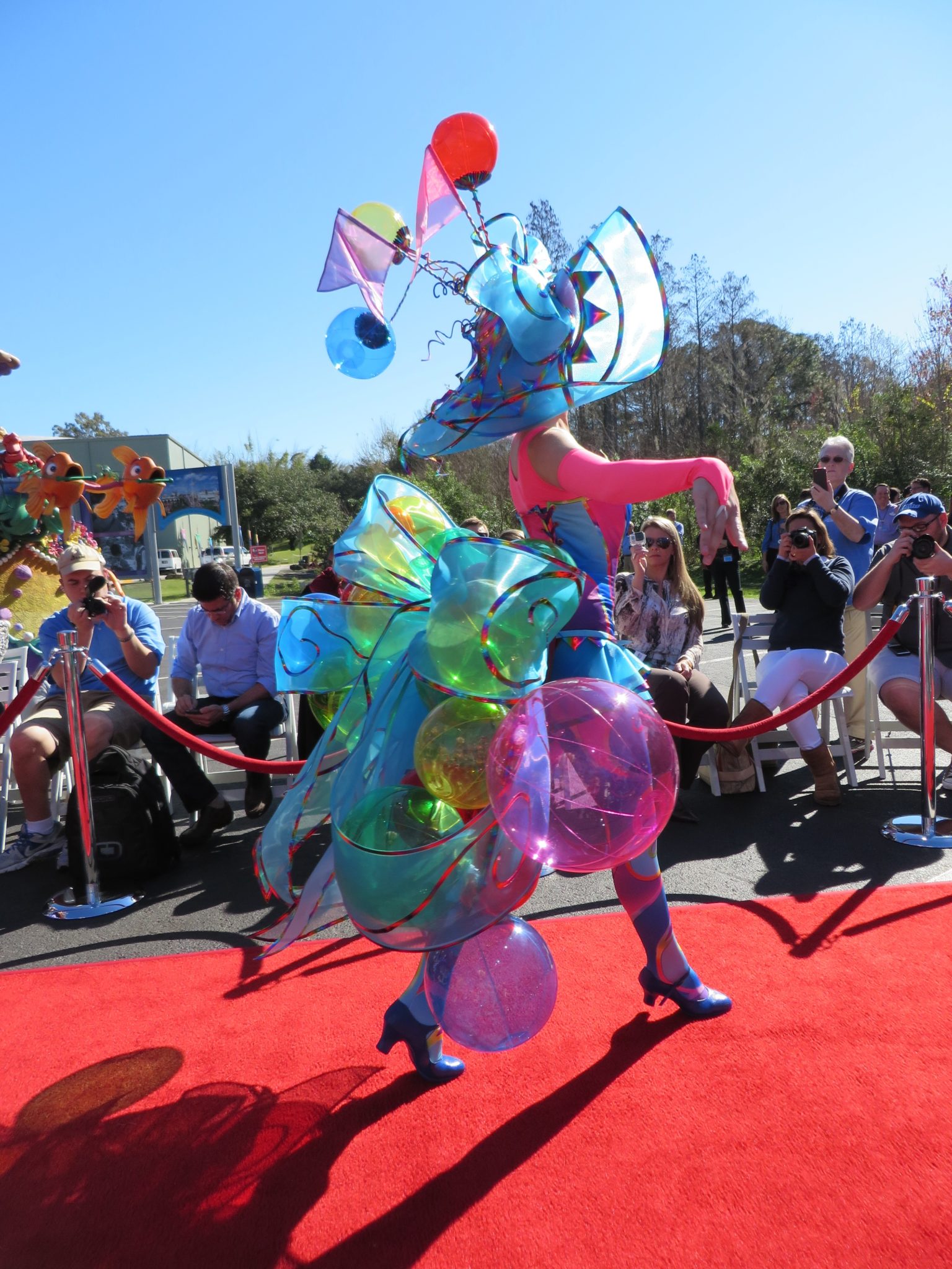 After having a few minutes to preview three of the floats; The Little Mermaid, Peter Pan/Never Land, and part of the Fantasyland finale float that will feature Mickey and Minnie in a hot air balloon; the red carpet was cleared to make way for the stars of the day. The focus of this event was the unique costumes worn by some of the performers that will surely be some of the most photographed non princess face characters in a long time!