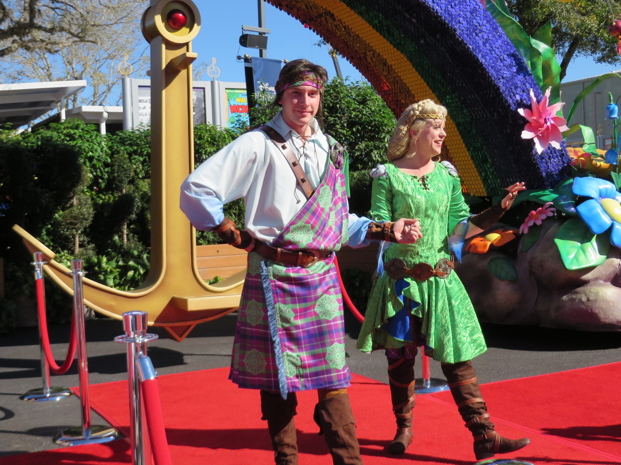 The first couple to make their way down the walkway was announced as being part of the PrincessGarden float, but they stylish outfits were overshadowed by the announcement that along with many of the other Disney Princesses, Anna and Elsa would be making their parade debut on the float. Our next stylish duo was two of the "thug" dancers from the Tangled float. But with the leather, always has to come the lace; so another dancer's costume was inspired by the maypole and is flowy and fun, inspired by the colors palette of Tangled. Next up we have three of our "under the sea" friends, all with bright colors to match the float and the feel of the classic Disney tale The Little Mermaid. (The Seashell girls’ conch head piece was created by a 3D printer, a first for a Disney parade) The well dressed Lost Boy won't want to be caught out in NeverLand without the latest look inspired by another group of trouble makers; The Newsies. This group of boys will be a sure highlight of the parade, very akin to the Donkey Boys from the Main Street Electrical Parade. Coming from the green hills of the Scottish Isles, we have the Highland Dancers that will be showing off some Celtic dance moves along with Merida on the Disney-Pixar's Brave float. From the bright greens now we move to the dark side of beauty. Joining the fire breathing steam punk dragon version of Maleficent will be the thorn stilt walker and raven. No fashion show, or parade, would be complete with the grand finale! These two beauties would be the belle of any ball...if it were held in Fantasyland. Representing the fun and beauty of bubbles and circus tents, these performers will help bring out Festival of Fantasy parade to a close.While no set date was said, the term "next month" was said a few times. From just the little bit we saw, this parade will be not only a great parade, but one of the most photogenic Disney has ever put on!