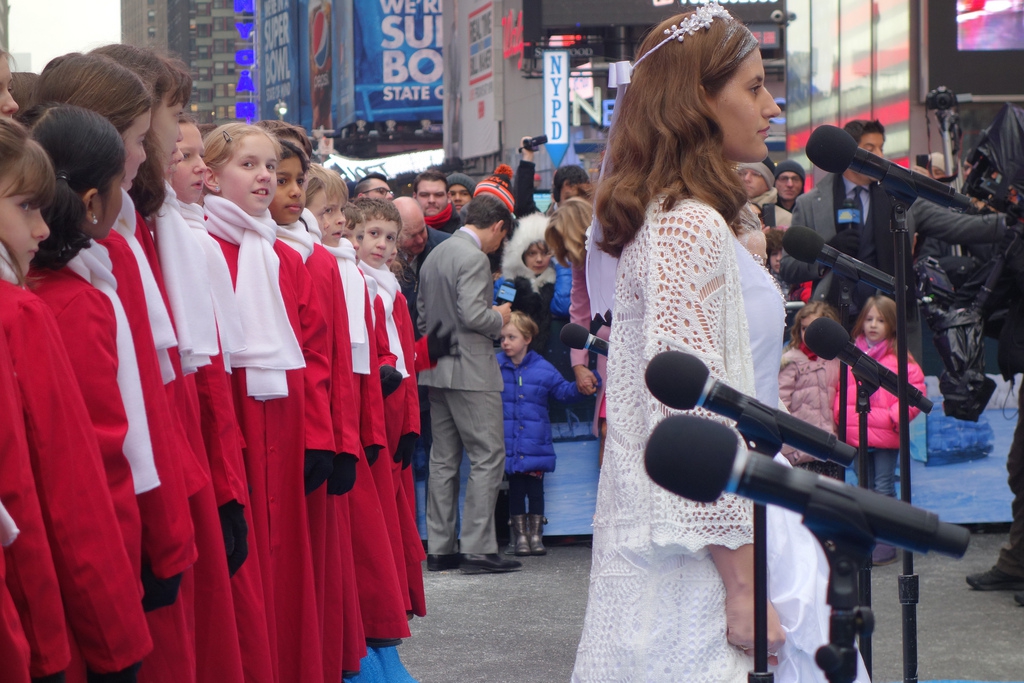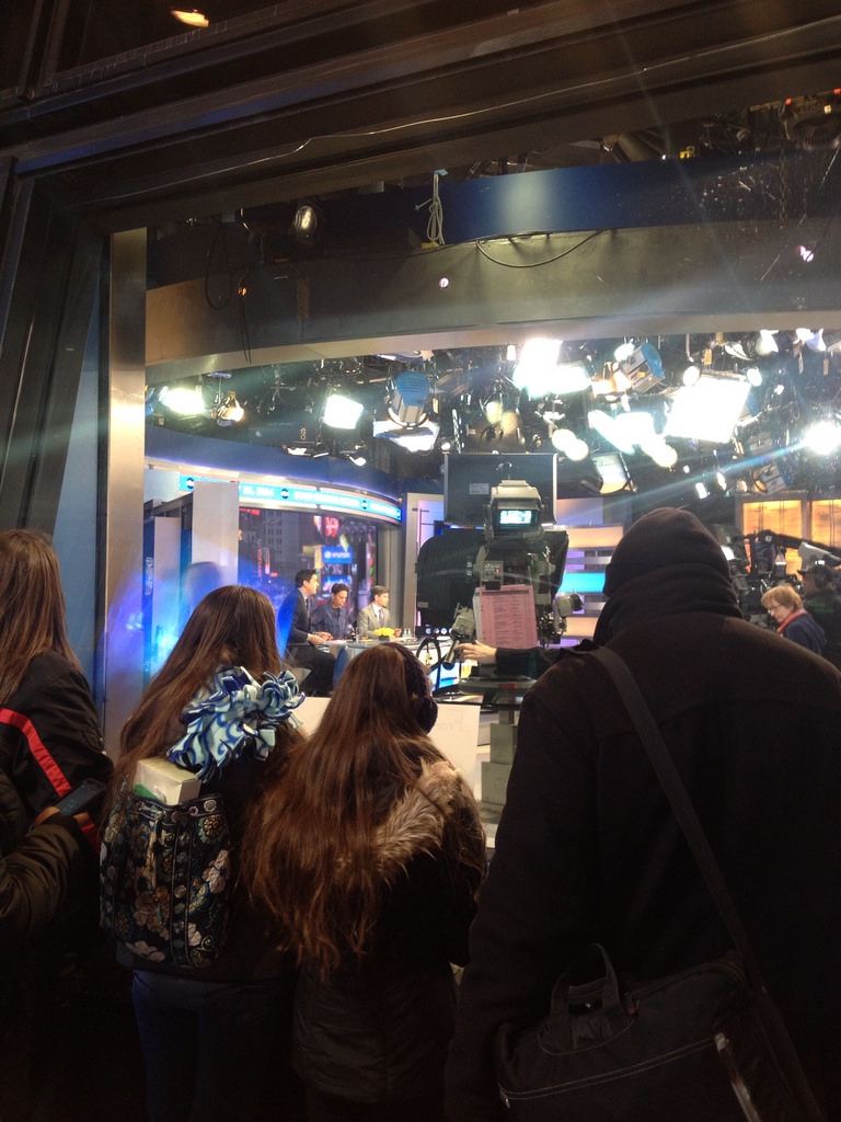 The darling New York Children's Chorus patiently shuttled in and out of the studio to the fenced off staging area in the middle of Times Square, to practice and tape segment spots, four times between 6:15am and 8am.