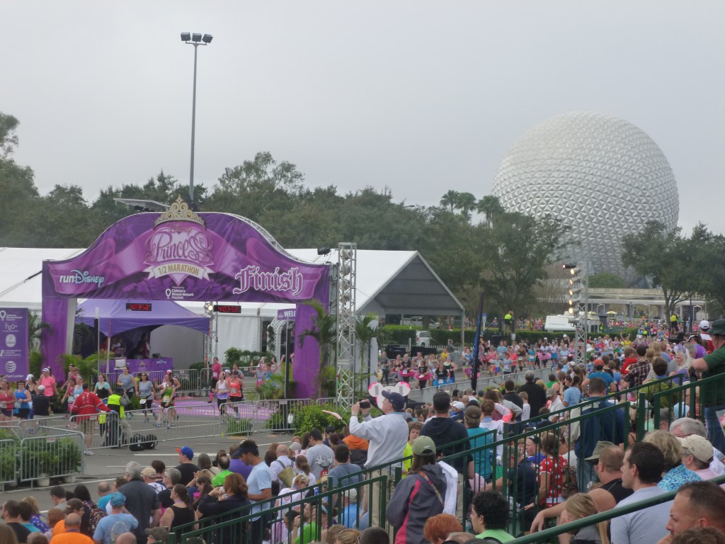 The half marathon course starts outside Epcot, and heads up World Drive to the Transportation and Ticket Center, past the Contemporary and into the Magic Kingdom. After running up Main Street, the course turns into Tomorrowland, up through Fantasyland, through the castle, and into Liberty Square and Frontierland. After exiting near Splash Mountain, we ran along a backstage road, eventually emerging by the Grand Floridian and Polynesian. After passing by the speedway, the course returns down World Dr, takes several overpasses, and heads into Epcot for a quick out-and-back to World Showcase Lagoon, with the finish line in the Epcot parking lot.
