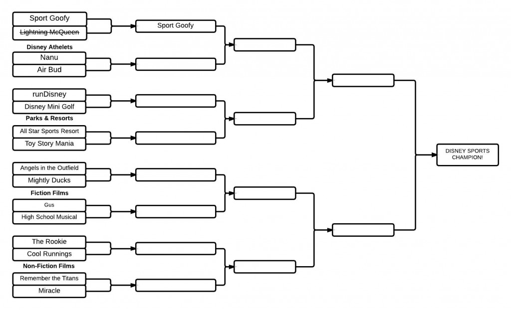Our first Mouse Madness matchup has concluded and Sports Goofy cruised to an easy victory of Lightning McQueen in the Disney Athletes region.
