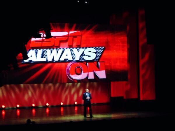 1000 am: Kenny Mayne takes the stage to talk social media. ESPN accounted for 20% of TV related tweets last month. I wonder what that number would be if you included other Disney owned networks.