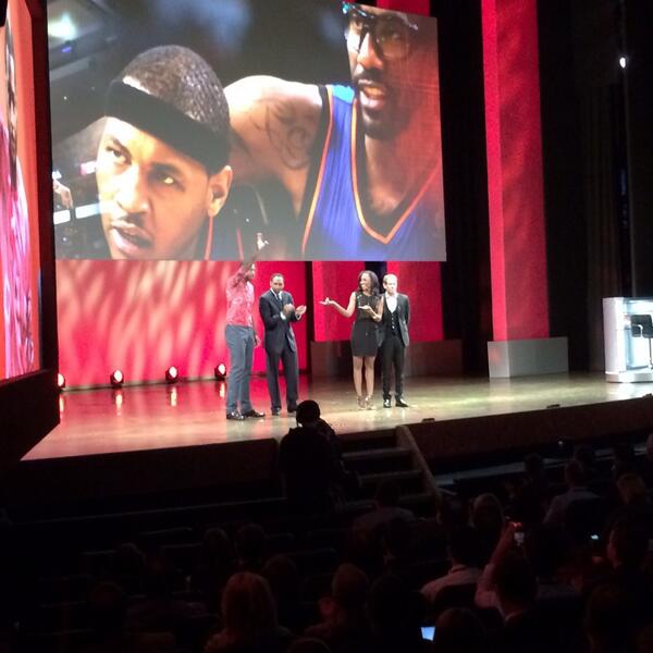 952 am: Carmelo Anthony gets a huge response as he takes the stage with the hosts of ESPN2's First Take