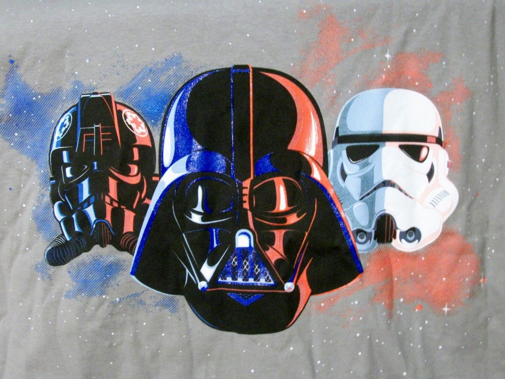 This one features cool artwork of Vader, a Tiefighter Pilot, and a Stormtrooper. The red and blue highlights really make this design pop!