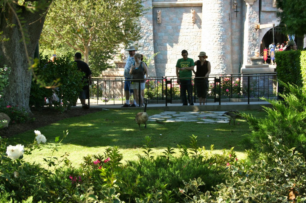 Back at the castle, Canadian Geese forage on the lawn