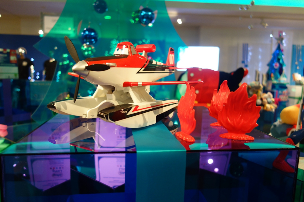 The merchandise was displayed in eight sections; The Disney Dozen, Disney Baby, Girls, Boys, Disney Store exclusive, Gifts under $25, Apparel, and Tech. "Frozen", "Guardians of the Galaxy", and "Star Wars Rebels" were heavily represented.