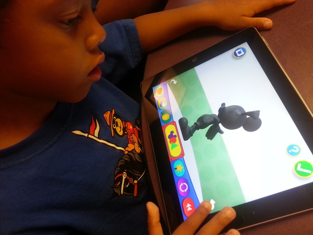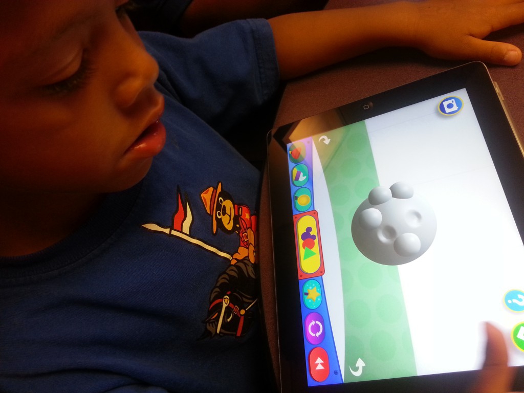 The fun begins when you a pick your sculpt’s color and shape. You can start with Mickey or Minnie or choose from a variety of shapes. Also available are a variety add-on accessories including glasses, shoes, musical instruments, etc. Whenever you are ready to reshape your creation simply choose your tool. Using the plunger you can pull and stretch your 3D sculpture or grab the scoop and dig in. We enjoyed watching the little pieces fly off the sculpt. As a mom I try to introduce my son to a wide variety of experiences. I was very pleased to find this app offers my little guy an introduction to digital 3D sculpting. It took a few minutes before we discovered the arrows that rotated our sculpt left and right. But these views allowed him to better realize the effect our stretching and scooping was having on the figure. I enjoyed watching him pull out Mickey’s tummy so that he looked like he had swallowed a basketball. It was fun watching him explore a 3-dimensional image in a digital space. He has played with lots of drawing and coloring apps so it took a few minutes for him to adapt to these new options. I could see him testing various strokes and then rotating the image to better understand their impact. Seeing him discover new things is always fun as a mom. They even offer a photo option to share the digital masterpieces, an option very popular in our house as we don’t live close to our extended family.