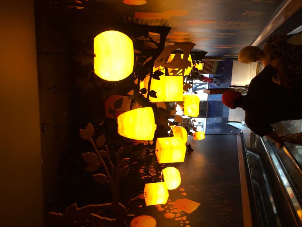 The escalator ride to the second floor looks like the floating lantern celebration in Tangled, so that was a beautiful and neat detail. The second floor held merchandise you’d find at any other Disney store, just with a little more pizazz. The Marvel section had a cylindrical TV showing clips, the princess section had a much larger castle than any other store, and more usual merchandise (including the TV gazebo room).