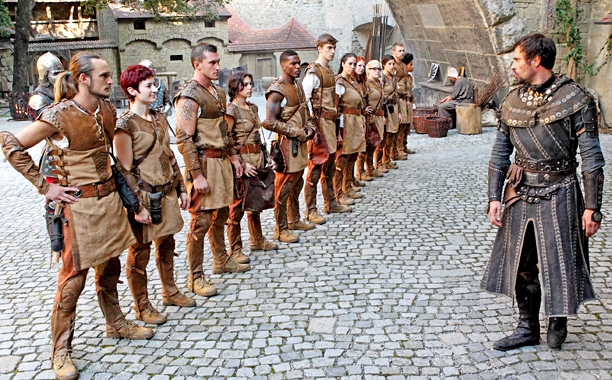 The show begins in our world, where 12 contestants are summoned to go underground, into a river, and transported into another world. The contestants remain from our world with their families and jobs back home. This helps the show from being completely bizarre with a bunch of people pretending to be someone they are not. While the show borders on live-action role-playing, the contestant are always playing themselves. Following an introduction to the world, which included being chased by ogres and being locked in a dungeon, the first challenge commenced. The twelve contestants were divided into teams of 3. The goal was to shoot arrows from a crossbow and hit targets that were over a fence. One member of the team was on a lookout that could see above the fence and directed the other two team members on how to adjust their aim. The team that lost the challenge was eligible for “banishment.” The winning team, selected the member that showed the most leadership, and she was awarded a pendant. It is unclear what benefit that award may have.