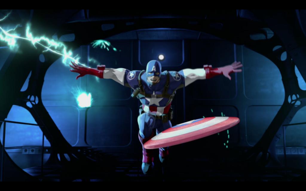 If you watch the Marvel shows on Disney XD, you see that that marvel is able to execute animation. I don’t understand why they picked this form that lives in the awkward valley between motion comics and full animation. I would much prefer a special 2-hour episode “Marvel’s Avengers Assemble” with its full-animation. Interestingly enough the voice cast that is led by Roger Craig Smith (Captain America) and Adrian Pasdar (Iron Man) is retained from the Disney XD Universe of Marvel Animation. Trivia time, can anyone name which live-action character Pasdar portrayed on ABC’s Marvel’s Agents of S.H.I.E.L.D.? If you said Colonel Glenn Talbot you win a S.H.I.E.L.D. lanyard. Pick it up from Agent Koenig.
