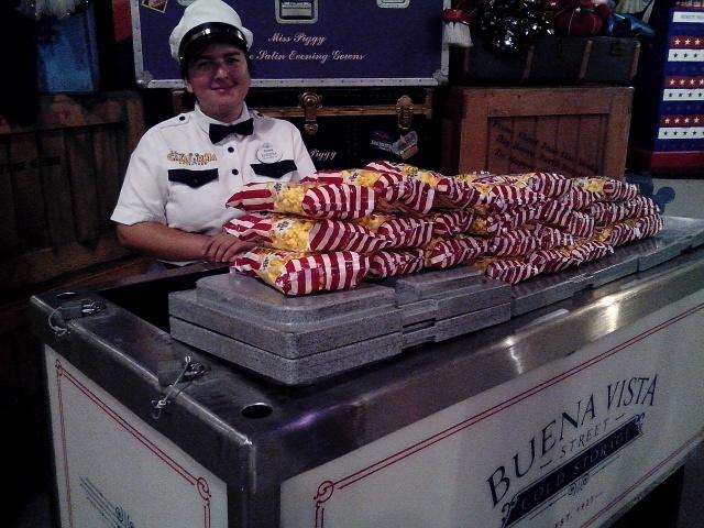 Upon returning to the theater we were given a pack of Kermit the Frog and Miss Piggy pencils and welcomed in to the theater. Once inside the pre-show area we were greeted by cast members behind vending carts distributing our free popcorn and soda. Refreshments in hand, we shuffled into our seats and within minutes the show began. A cheerful host came out to get the crowd excited and involved by asking a variety of trivia questions, rewarding correct answers with a Muppets Most Wanted Blu-Ray combo pack. Questions ranged from the very simple, such as naming characters based on personality traits, to the more challenging, such as naming composers and directors used for Muppets films.
