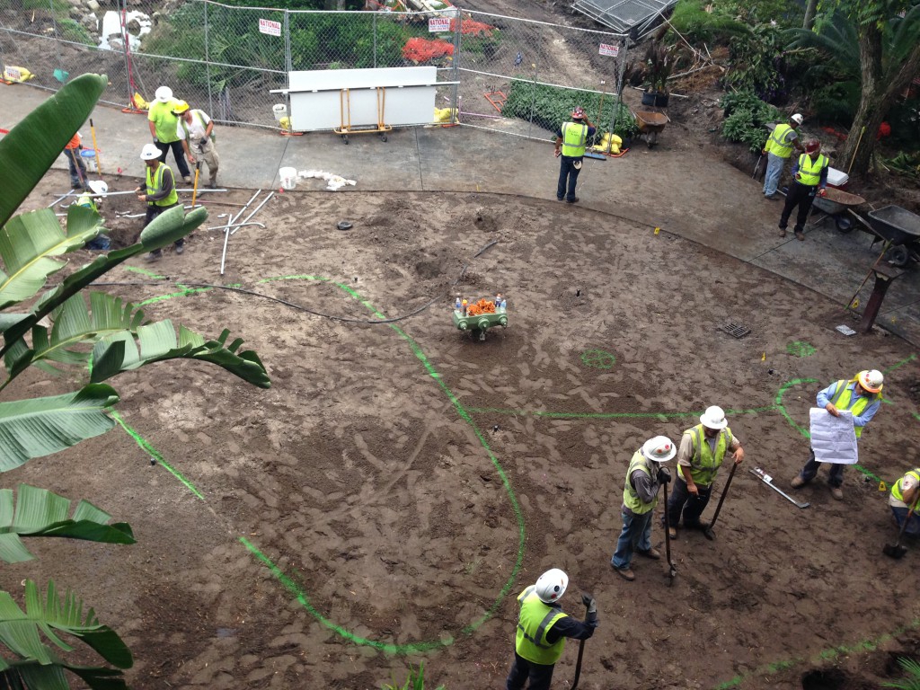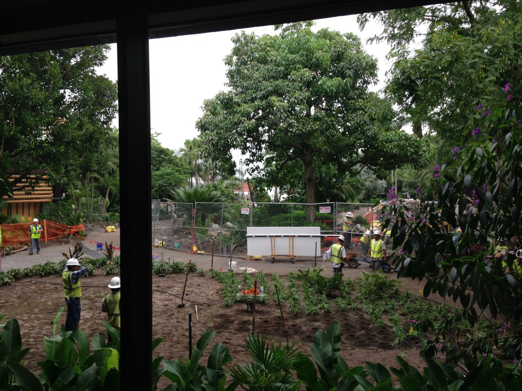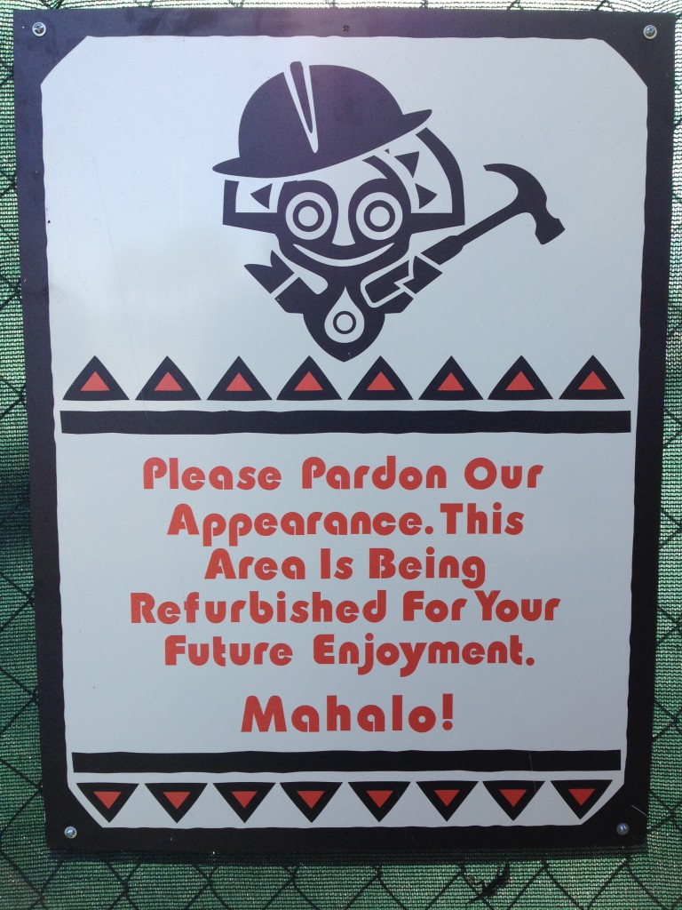 As we say goodbye to Capt. Cook's we head out to the beautiful grounds of the Poly....well they were and I am sure will be again. As you can see the backdoor is blocked off for reworking of the walk ways and preparation for the removal of the volcano pool.