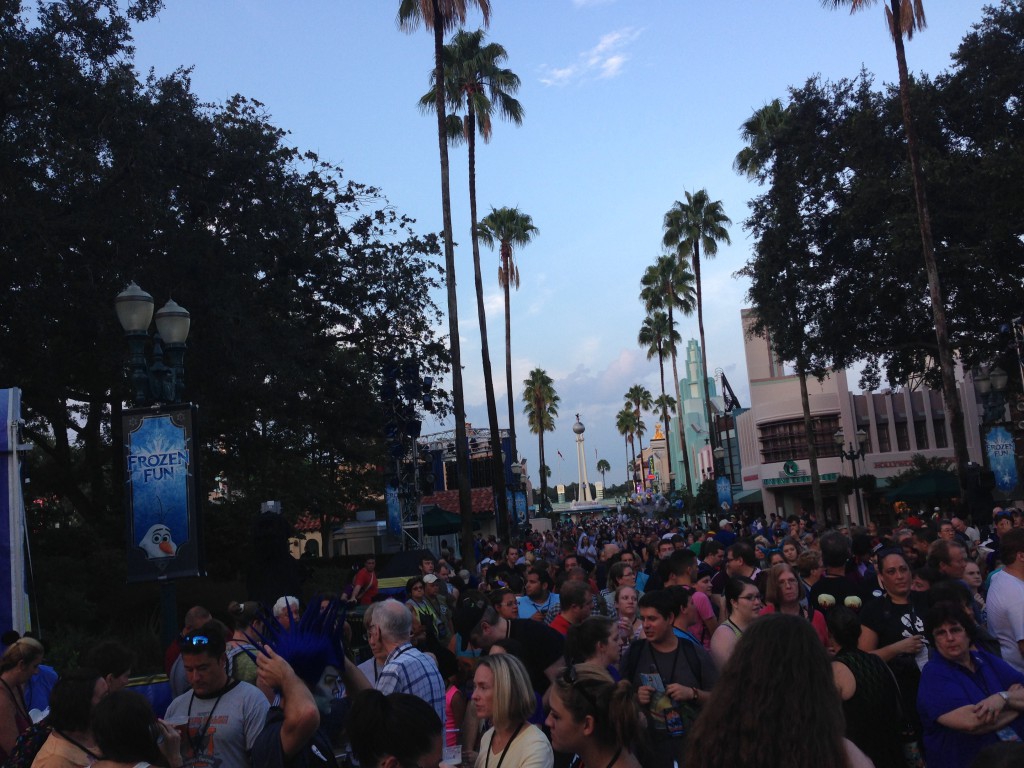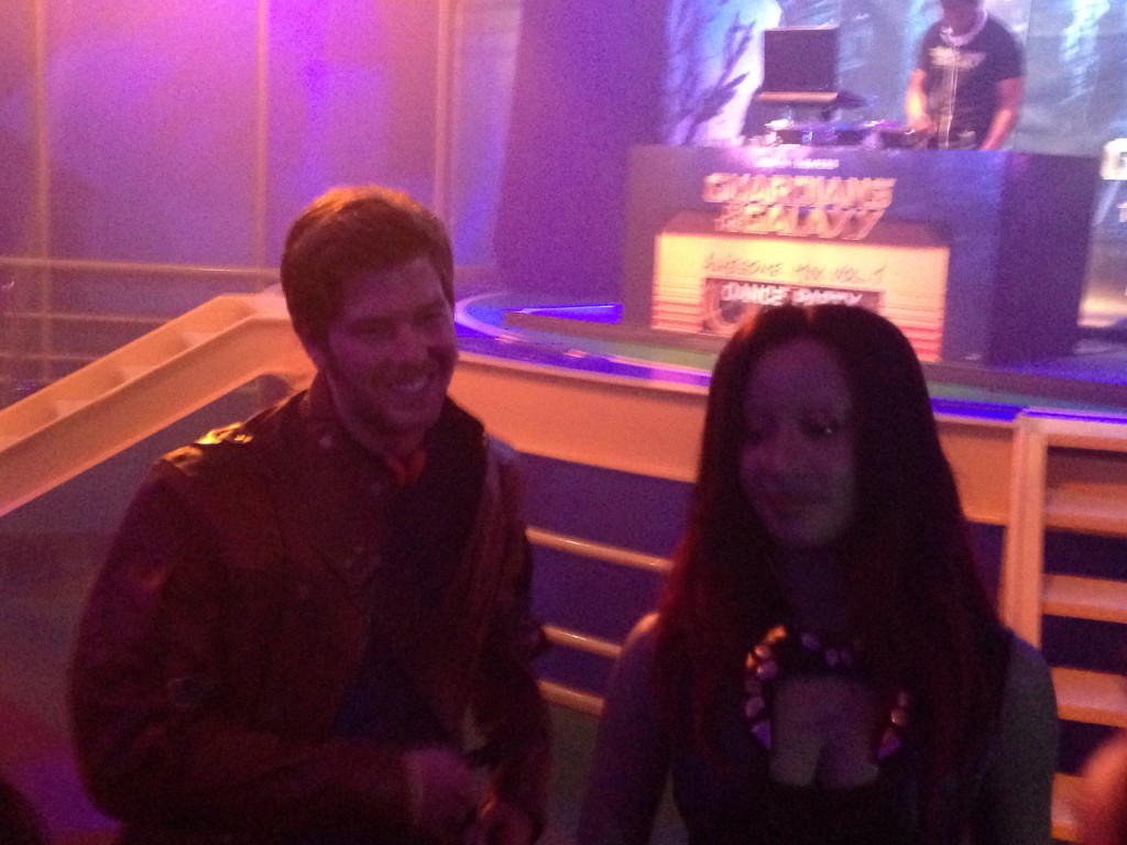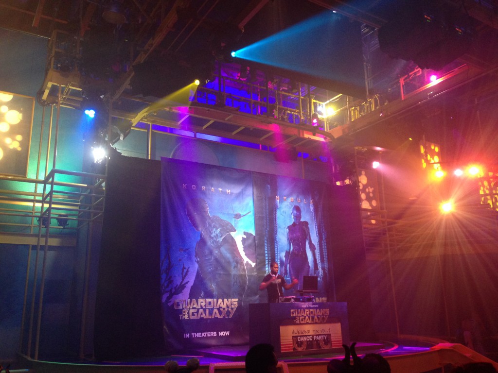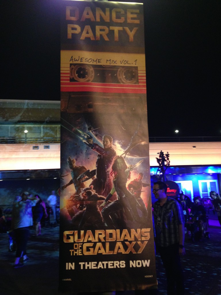 Instead of waiting for the next show I decided to head to the late addition to the event, the Guardians of the Galaxy Awesome Mix Tape Dance Party featuring the debut of the first Marvel characters in a Walt Disney World park, Star-Lord and Gamora. This "dance party" was a DJ playing some of the best of the 70's and 80's music and Star-Lord and Gamora walking back and forth behind a barricade with so much fog pumping in to keep the place cool guests had to leave because they were having a hard time breathing.