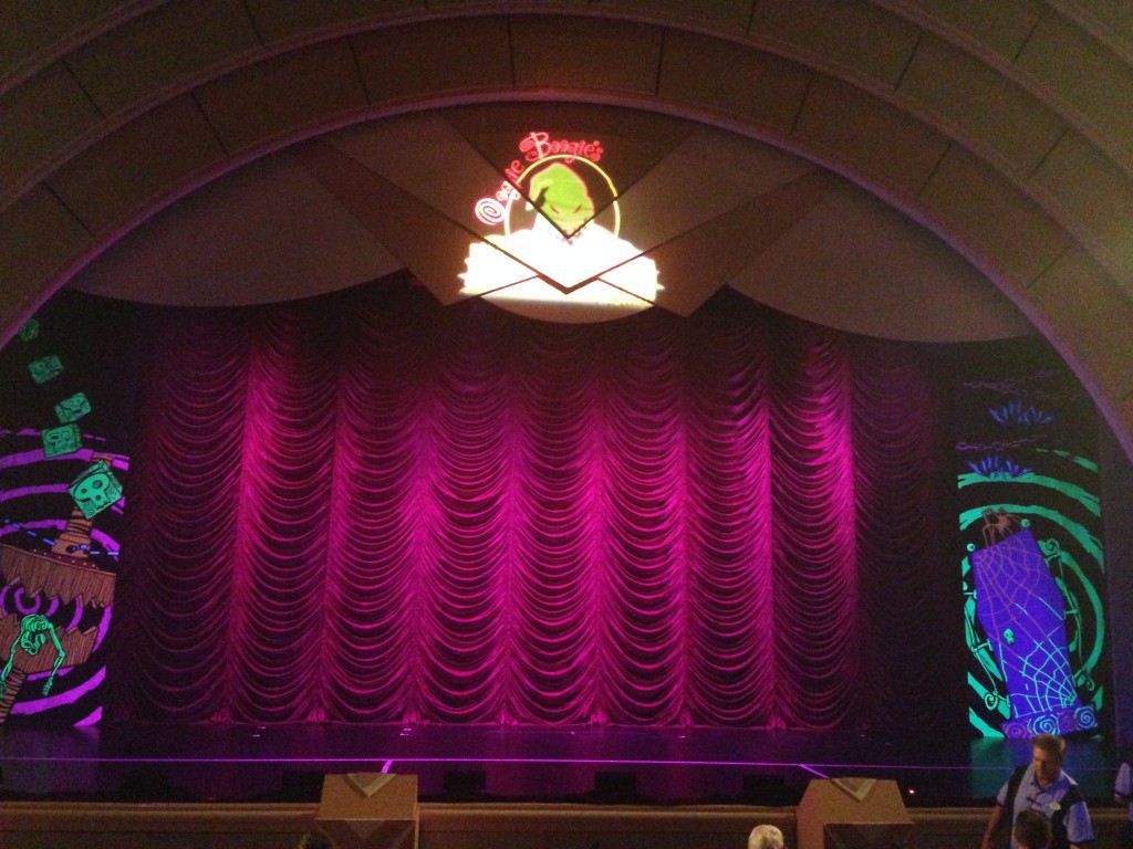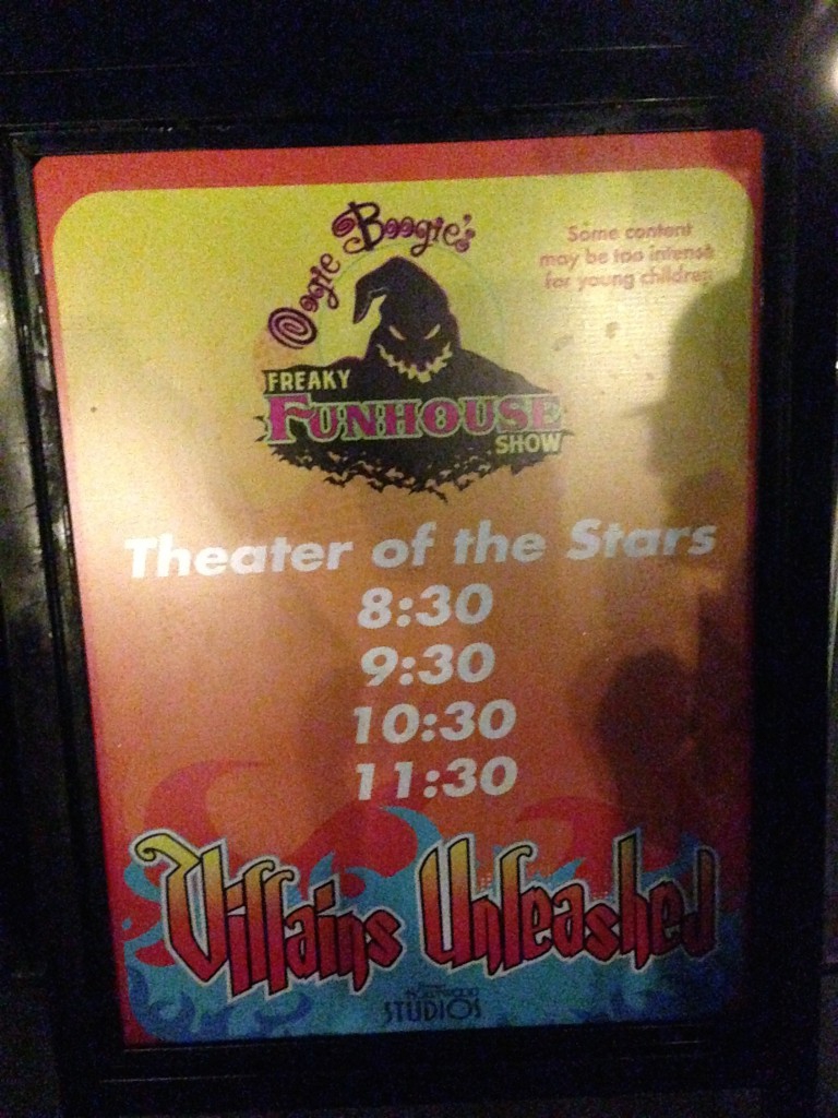 More villains does not a better night make! The evening started with the opening as seen above which took place at 8pm, the start of the 5 hour event, but to get a good place to see the ceremony I got a spot an hour and a half before. The opening was fun even with the glossing over some of the villains due to them being in place already. Once the opening was done to maximize the time I headed right to the first Oogie Boogie's Freaky Funhouse Show which was filled to capacity as I walked up.