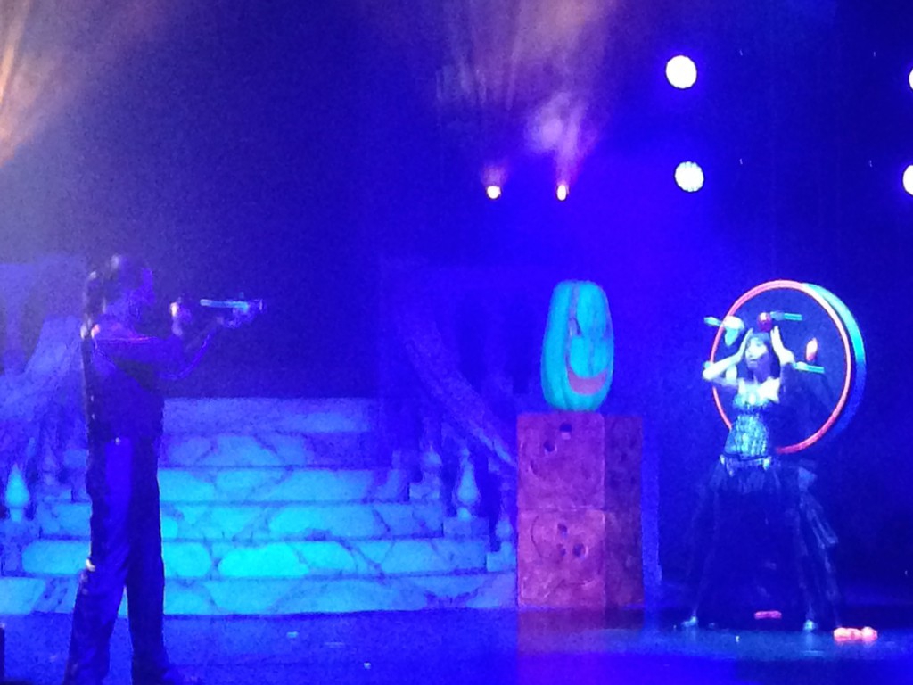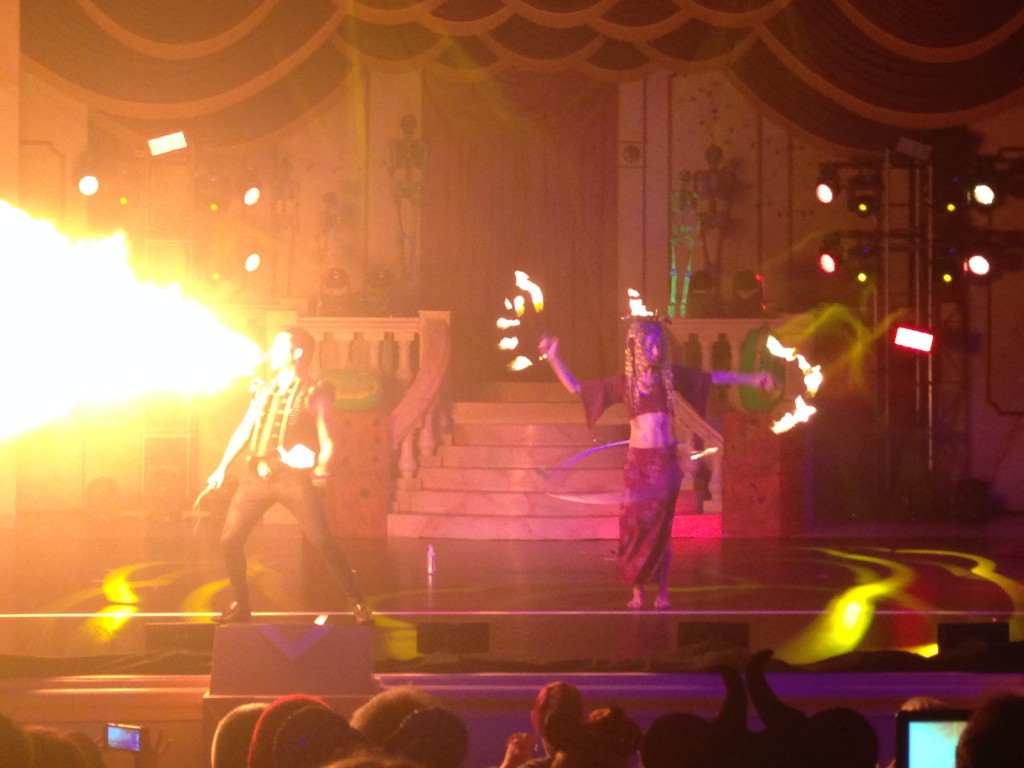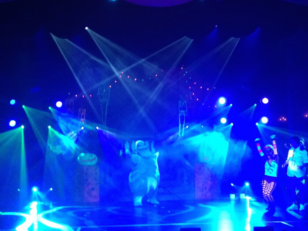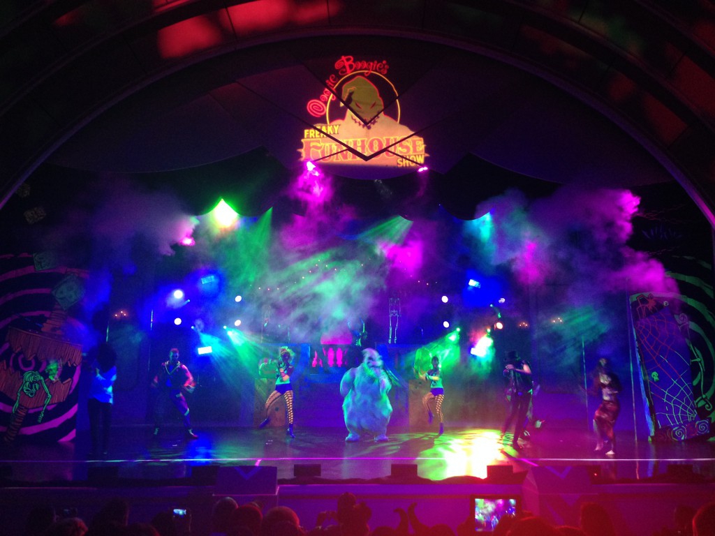 After finally making it past the dance party of the main stage with DJ IGG Nite and some of the villains dance party I made it to what has to be one of the highlights of the night, Oogie Boogie's Freaky Funhouse Show. This was a stretch for a Disney show, it basically was a freak show with a sword swallower, a crossbow couple, and a fire eater all hosted by Oogie Boogie. It was a fun show but like I said a stretch for Disney with a lot of people not knowing what to make of it.