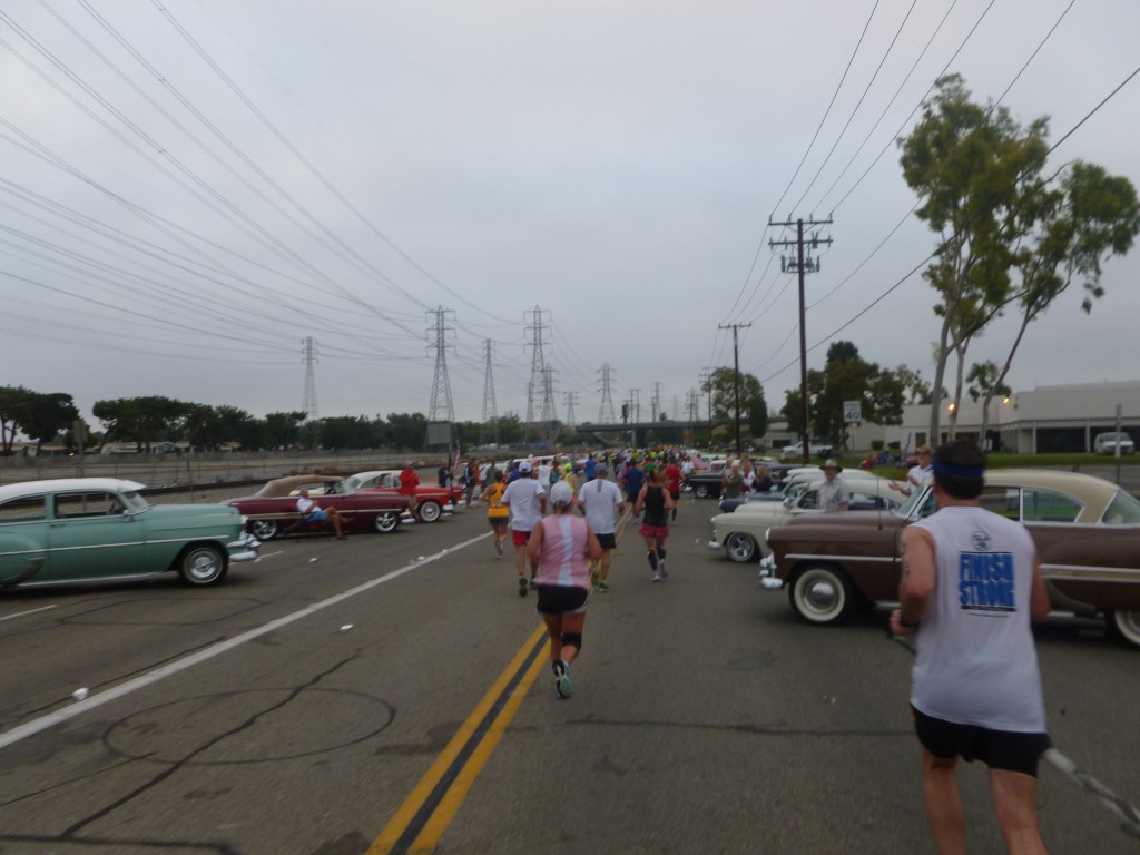 After leaving the parks around mile 4, the course proceeds on the self-proclaimed "scenic streets of Anaheim". Although this portion of the course is anything but scenic, it's where runners really get to see the hospitality of the city and the local residents. Roughly every mile there were marching bands, cheerleaders, cultural dance groups, or some other form of entertainment. One of the biggest improvements made since my first running of this race is the inclusion of a classic car club that lines about a mile of the course in an otherwise-remote and discouraging part of the course.