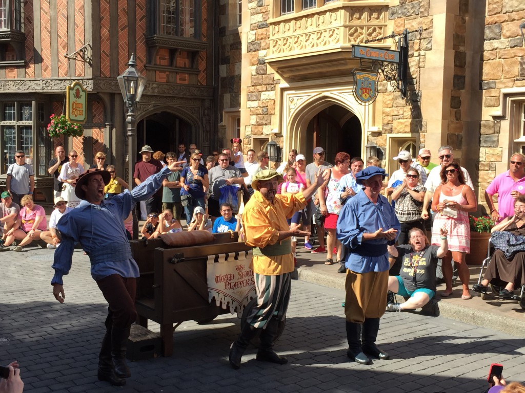 In 1982 a local comedy troupe was brought into E.P.C.O.T. Center to provide a bit of entertainment in World Showcase called the Olde Globe Players. That group went on for years and eventually became the World Showcase Players who would preform shows in Italy and U.K. Pavilions for many years before being downsized to just U.K.