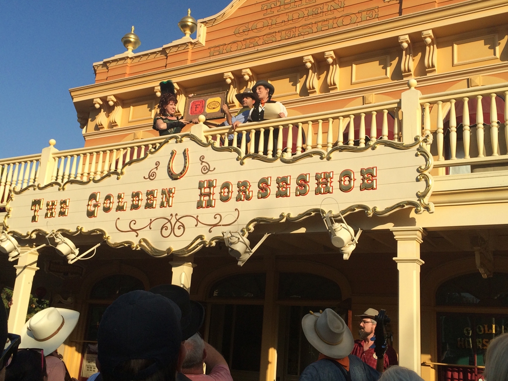 Later in the day, there was a festive hoedown with live music. Shortly after the dance had finished and everyone had caught their breath, a speech was made from atop the balcony of The Golden Horseshoe. Citizens of both Frontierland and Rainbow Ridge revealed a plaque bearing both towns’ insignia. They asked that those in attendance continue to work to make Frontierland “your land,” echoing Walt Disney’s speech at the opening of Disneyland.