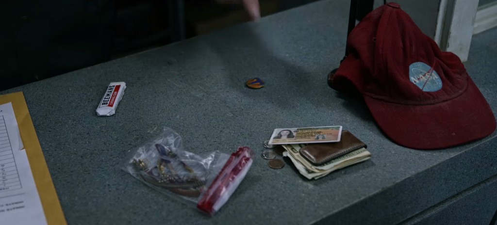Some of the items that the woman receives back of note are a pin, and a baseball hat with the NASA logo on it. Does she work for NASA? The hat looks beat up so she’s had it for awhile.