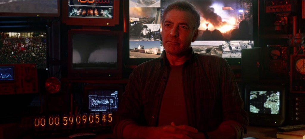 We then cut to the man himself, George cloony in a dark room with a bunch of monitors show what looks like, civil unrest. There is also a very lost like countdown clock next to him counting down. Counting down to what? The end of the world?