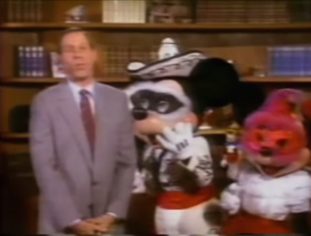 Pluto's Judgement Day in addition to clips from Disney films, mostly featuring villains. The host for this special was a jack-o-lantern puppet, but the real highlight of the special was a theme song written by John Debny and Galen R. Brandt. Once you've heard it, it will never leave you. This special received a VHS release as well.