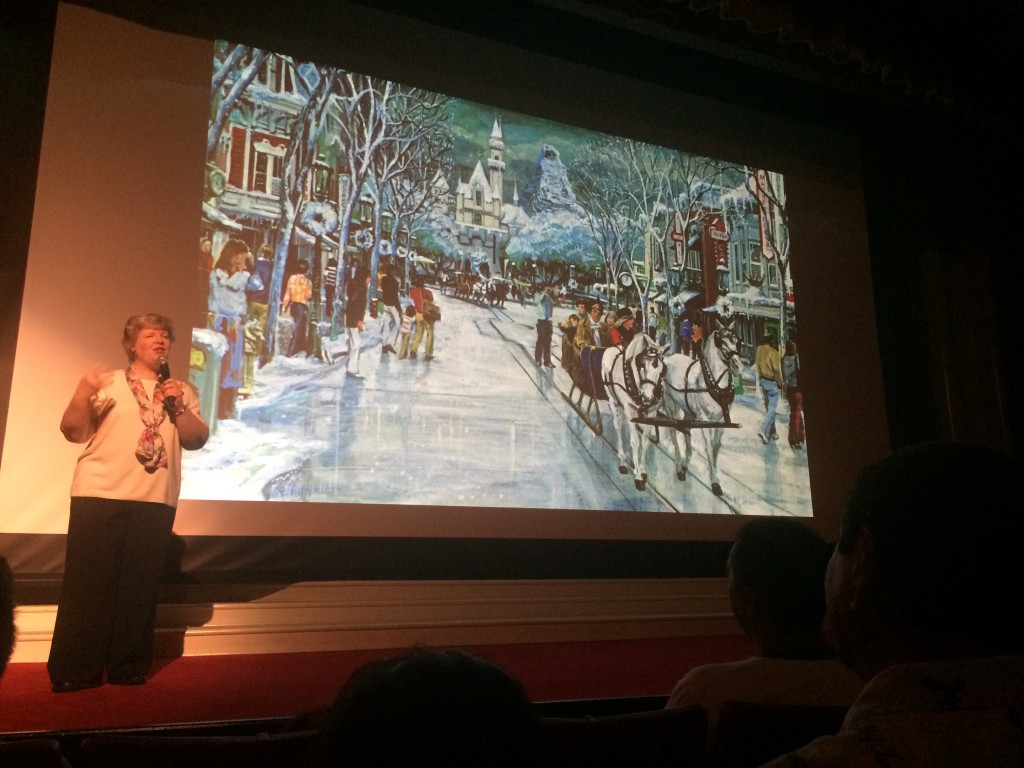 The "Wednesdsys with Walt" Annual Passholder Event continues at Disneyland, and they've switched to holiday mode. Disney historian and artist Stacia Martin was on hand to introduce the four classic holiday shorts we were going to see: "Mickey's Good Deed" in black and white from 1932, "Santa's Workshop" in full Technicolor also from 1932, "Donald's Snow Fight" from 1942, and "Winter Storage" from 1949.