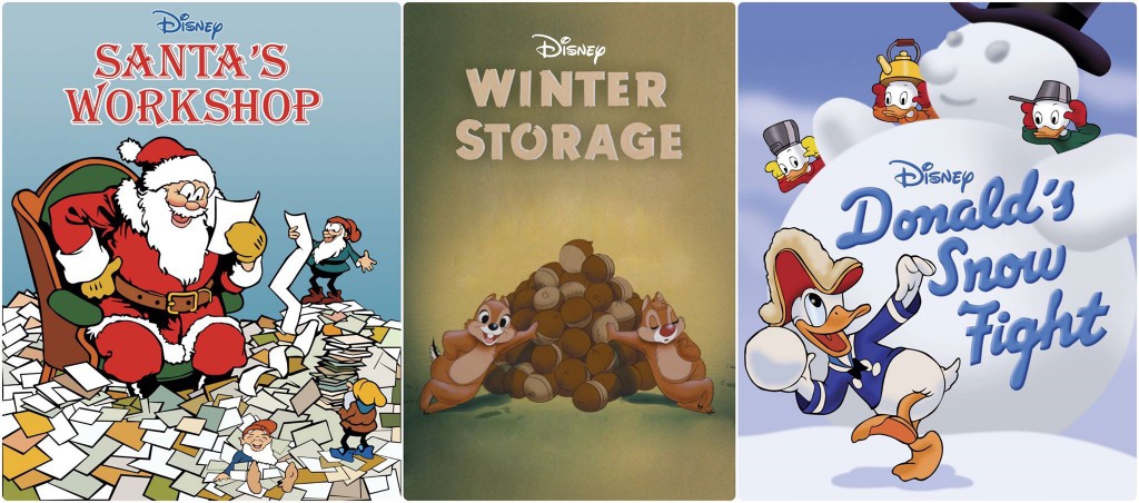 The last of the holiday shorts shown is one of my favorites - "Donald's Snow Fight!" This short features Donald and his three nephews, Huey, Duey and Louie. (Fun fact: Clarence "Ducky" Nash voiced the nephews, and his voice was over dubbed three times to make it sound as if all three nephews were talking at the same time.) In this short, Donald is excited that snow has fallen. Naturally, he wants to go outside and enjoy it. He steps outside, and is immediately taken back by the cold. He then puts on his oversized bell-shaped fur coat, grabs his sled, and out the door and up the mountain he goes. He sees his nephews building a snowman when he reaches the top of the mountain. Donald then sleds down the mountain, and crashes into the snowman, as a separate part of the snowman lands on each of the nephews. They then come up with a plan to get back at their uncle, and boy do they succeed! They build another snowman, but this time, it's on a boulder. Donald once again sleds down the mountain and runs into the boulder. Most of the fur from his overcoat falls off, except for one. He pulls it out and takes off his coat. Donald then chases after his nephews, but they get away. Donald and his newphews are later seen in snow/ice built battleships. The nephews do everything they can to torture Donald, and Donald does the same. In the end, the nephews win the battle, but it was all in fun for everyone!