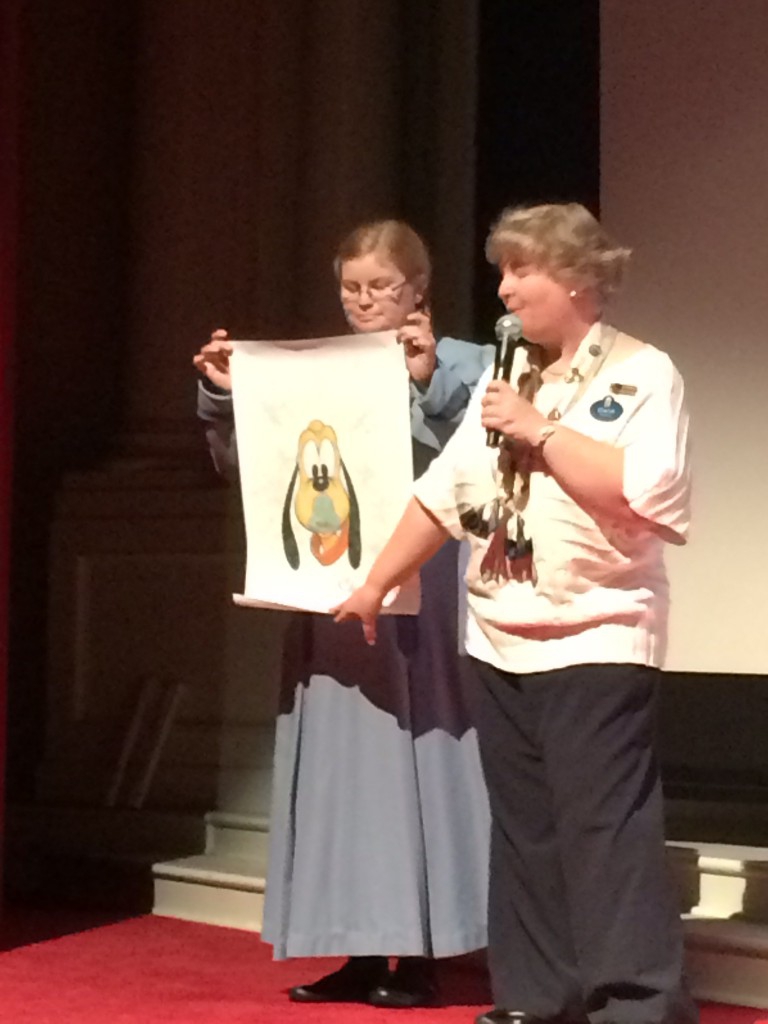 After the shorts were seen, Stacia made an appearance and once again gave away a sketch. This sketch had Pluto with the "Do Not Open Til Xmas" sticker over his mouth. One lucky guest won the sketch, and it was determined by seat number. Everyone received another red or green Annual Passholder exclusive ornament.