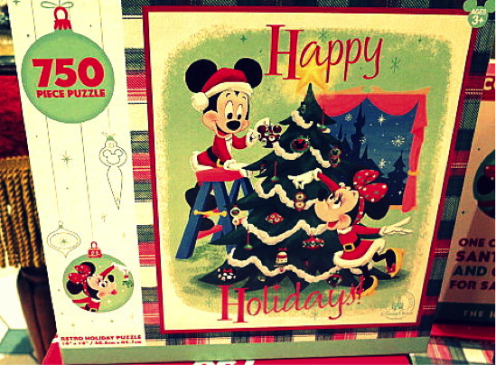 Above: First up is a 750 piece puzzle featuring Minnie and Mickey as they decorate their Christmas tree together, selling for $14.95