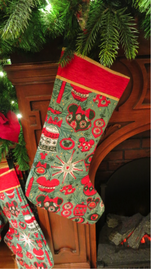 Stocking Holders for the mantle… Next, there is a line of ornate “Victorian” merchandise with maroon and gold colors with a very “Dickens” feel.