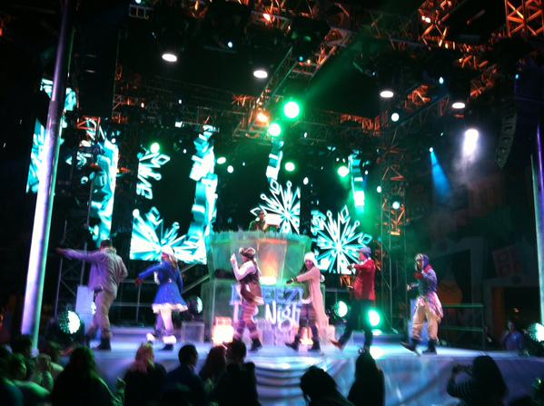 634pm PT: As we get ready for the big Diamond Celebration announcement, invited guests are "Freezing the Night" at Disney California Adventure.
