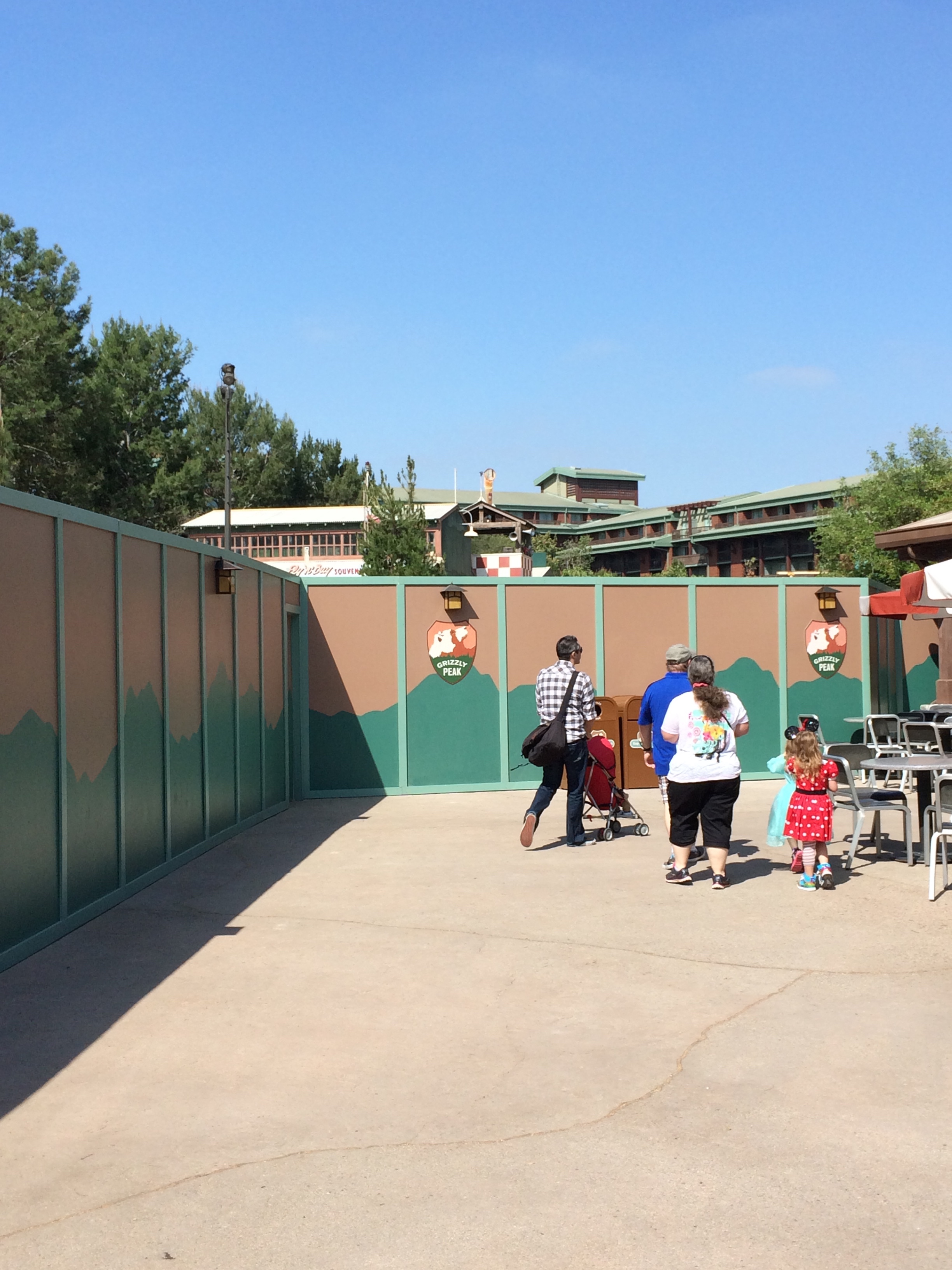 As I left Smokejumpers Grill, I tried to get a peek at the remaining construction taking place for the area. There was much to see yet, really. I did notice that over by the Fly ’n Buy, there now seems to be some sort of wooden beam. And the rock work near Buena Vista Street is being worked on.