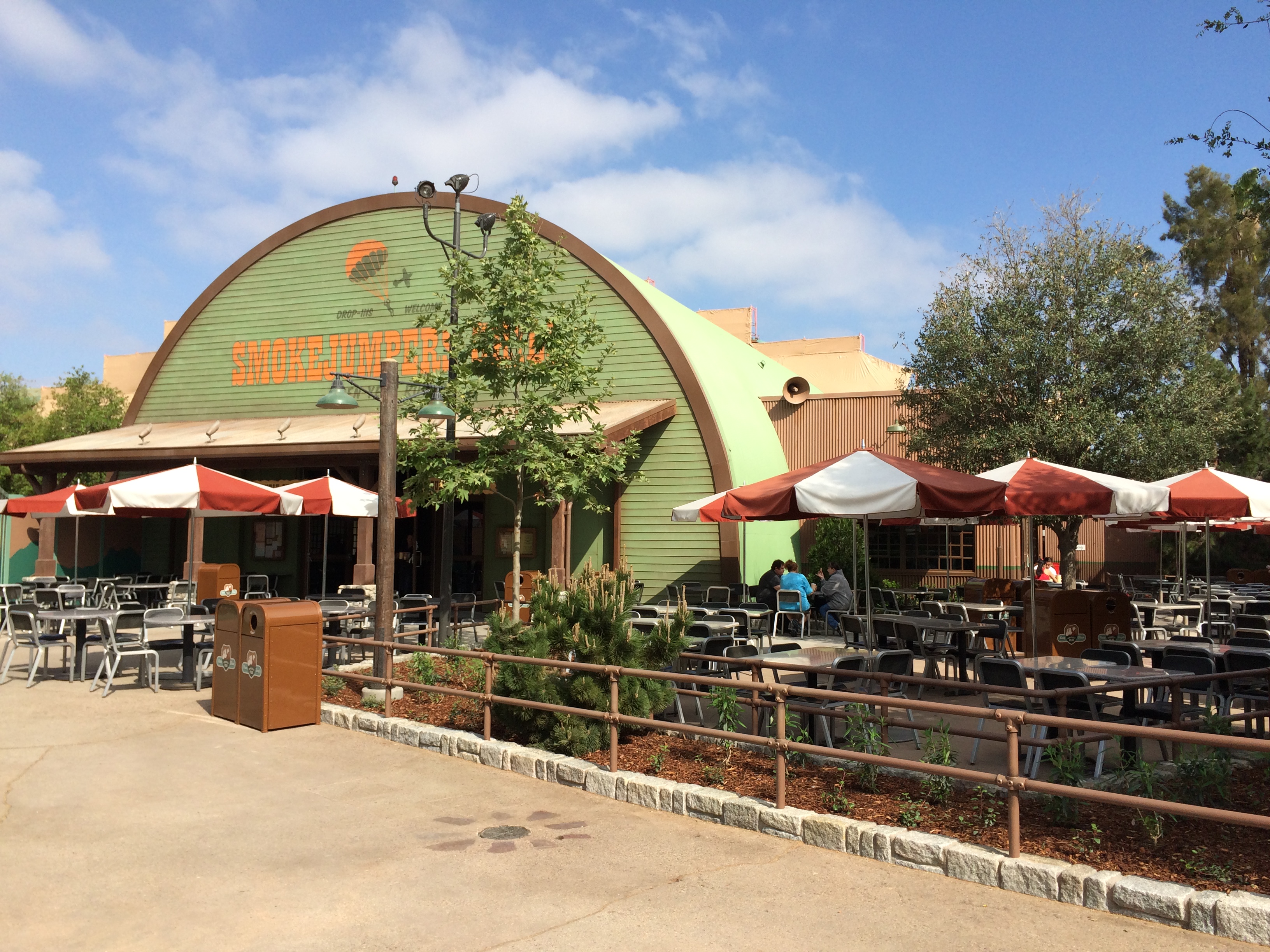 If you were to visit Disney California Adventure park this weekend, you would notice that a change has taken place. What had just days before been closed off by construction walls has opened up (at least, slightly) to allow guests entrance to the new Smokejumpers Grill.