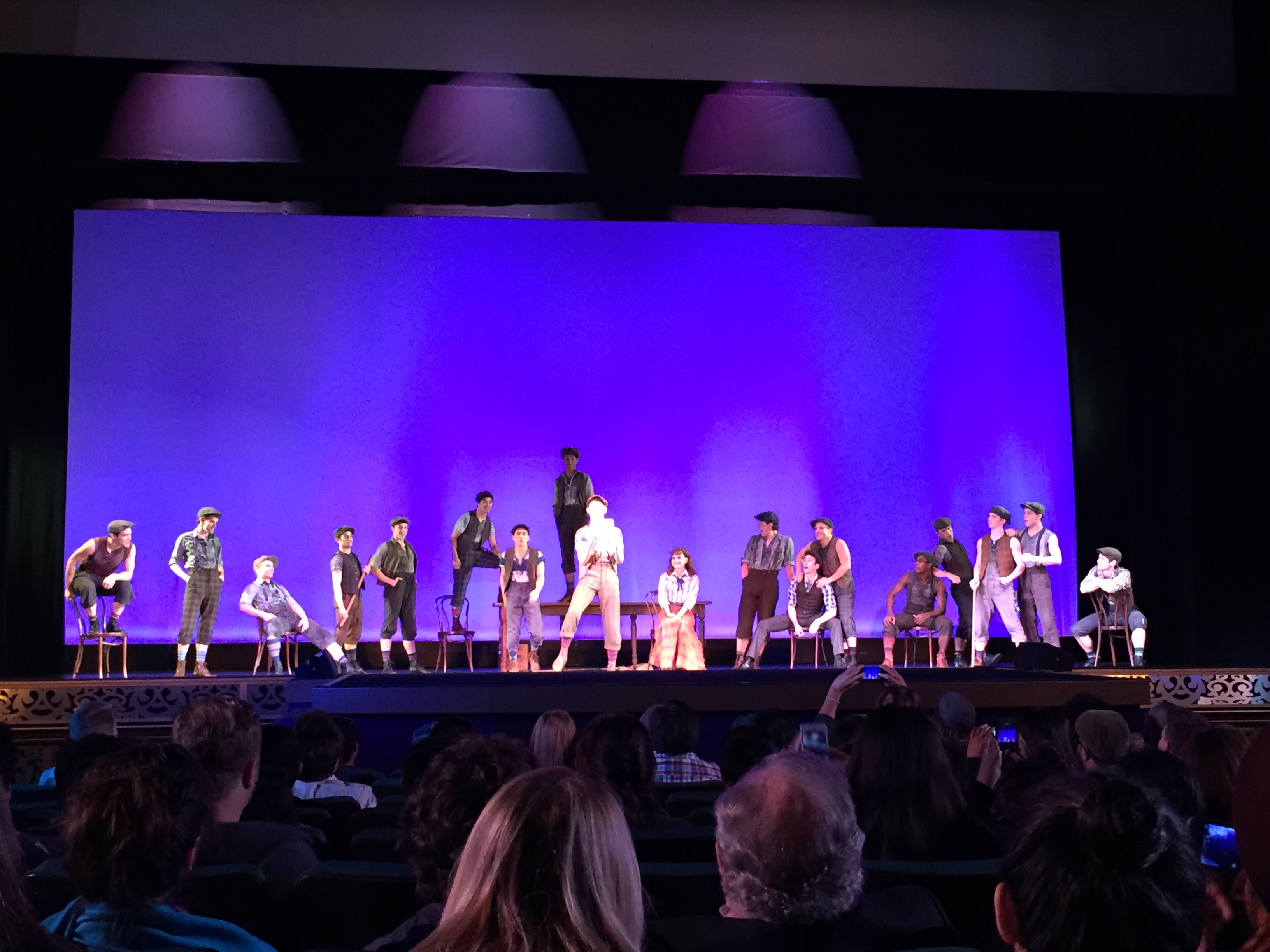 Perhaps the nicest surprise of the night was when the movie ended, the screen rose into the heavens of the theatre revealing the current cast of the First National Tour of “Newsies” now playing in Hollywood at The Pantages Theatre down the street from The El Capitan. As the screen rose the recognizable orchestrations from “King of New York” began to play and the audience was treated with a full performance. Just as we thought the night was ending, we were then given a performance of the irresistible ballad “Santa Fe”.
