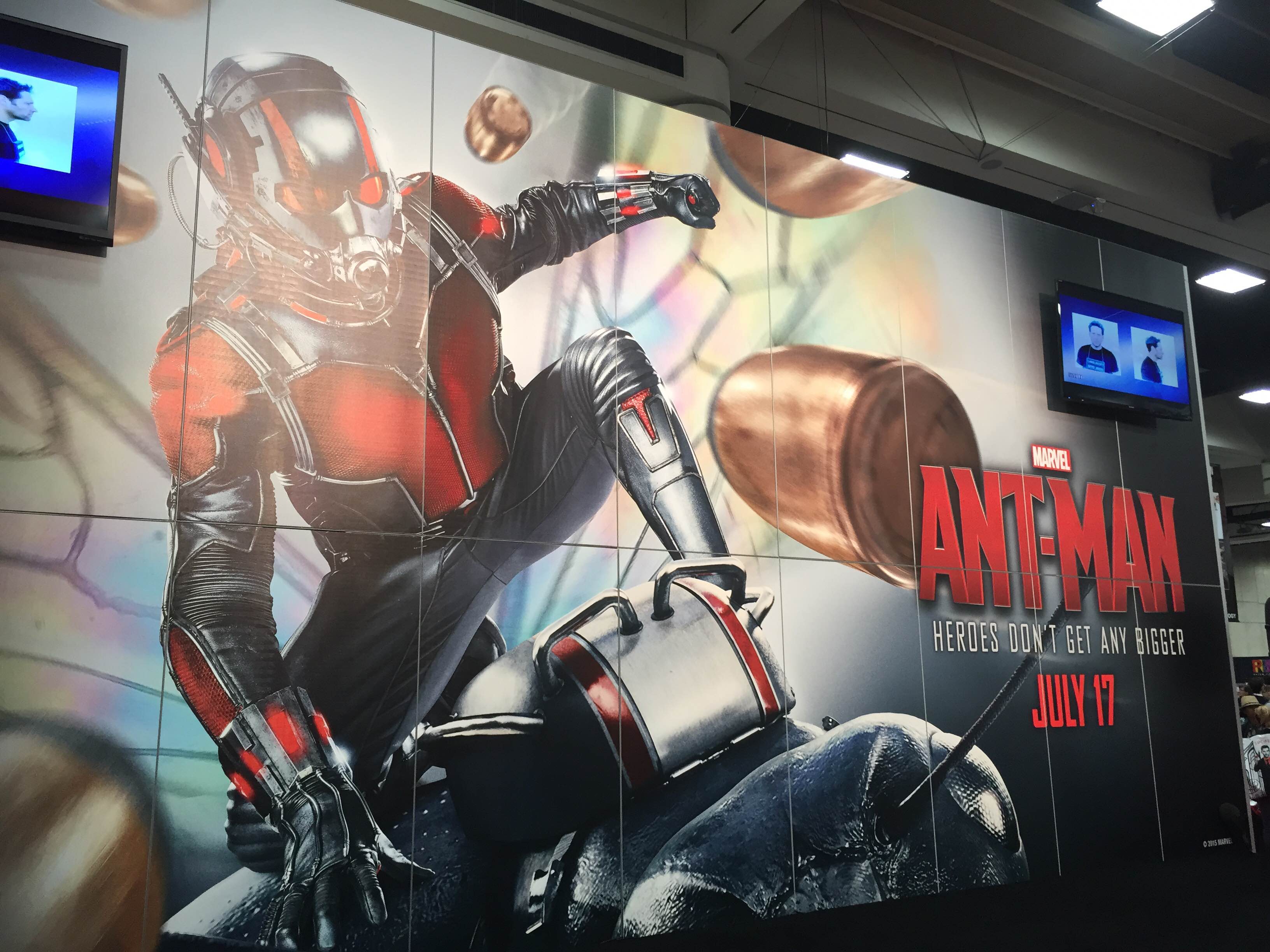 Marvel: This pavilion is focused on Ant-Man which is just over a week away from release. The exclusive merchandise at the booth proved to be quite popular. There was also a "green screen" Ant-Man photo opp that allowed you to join the fun of the film. There was also a Twitter vending machine. If you tweeted a specific hashtag, a special Marvel prize popped out of the machine. We won a Groot keychain. Look for more activity in this booth as the convention continues.