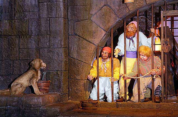 - Audio-Animatronics abound in this attraction! There are roughly 66 pirates and villagers plus an additional 57 different animals for a total of 123 AA models. Some of the Audio-Animatronics were created by Sarcos — an American based company that specializes in “dexterous, tele-operated robotic systems for use in unpredictable and unstructured environments.”