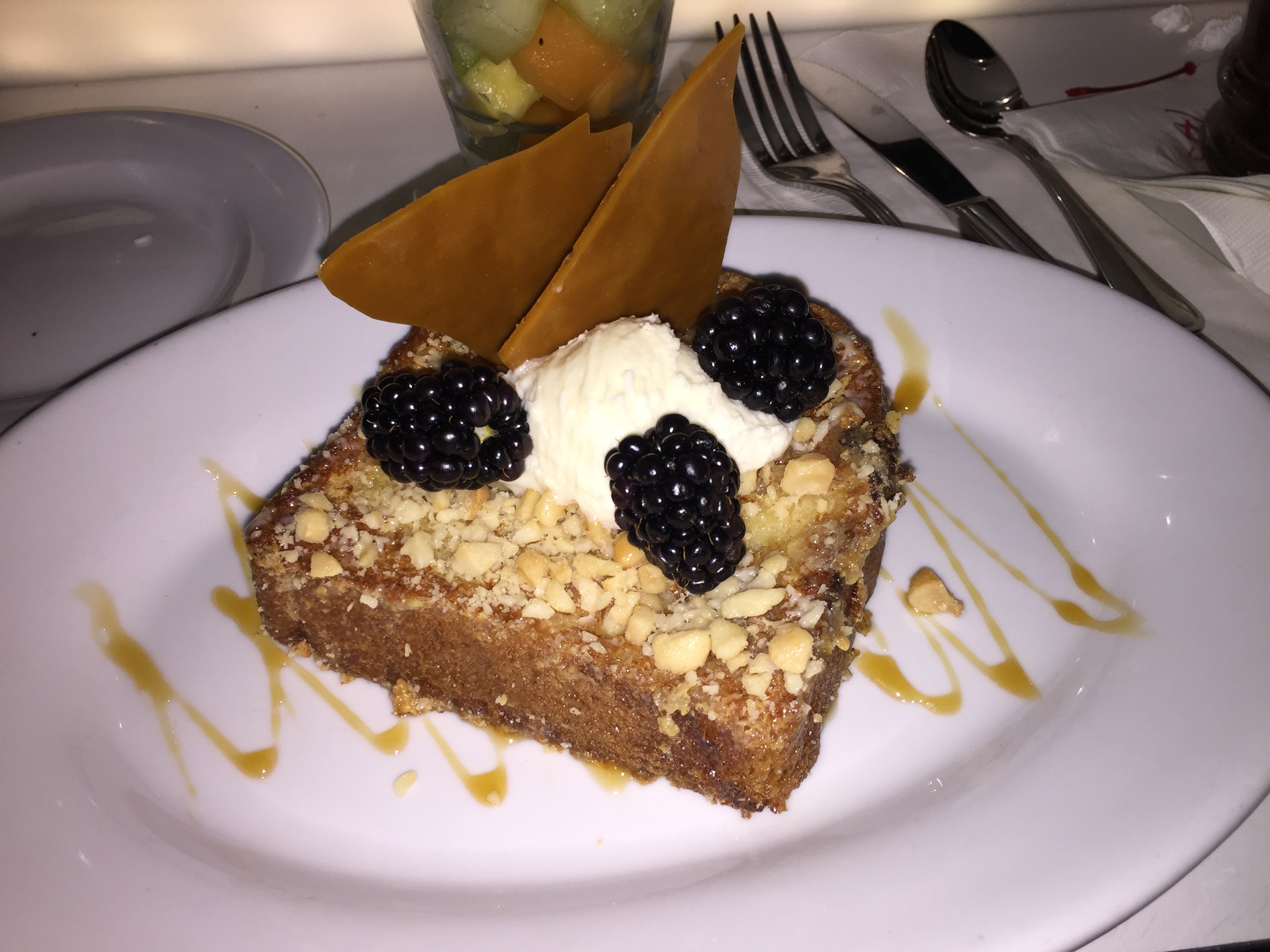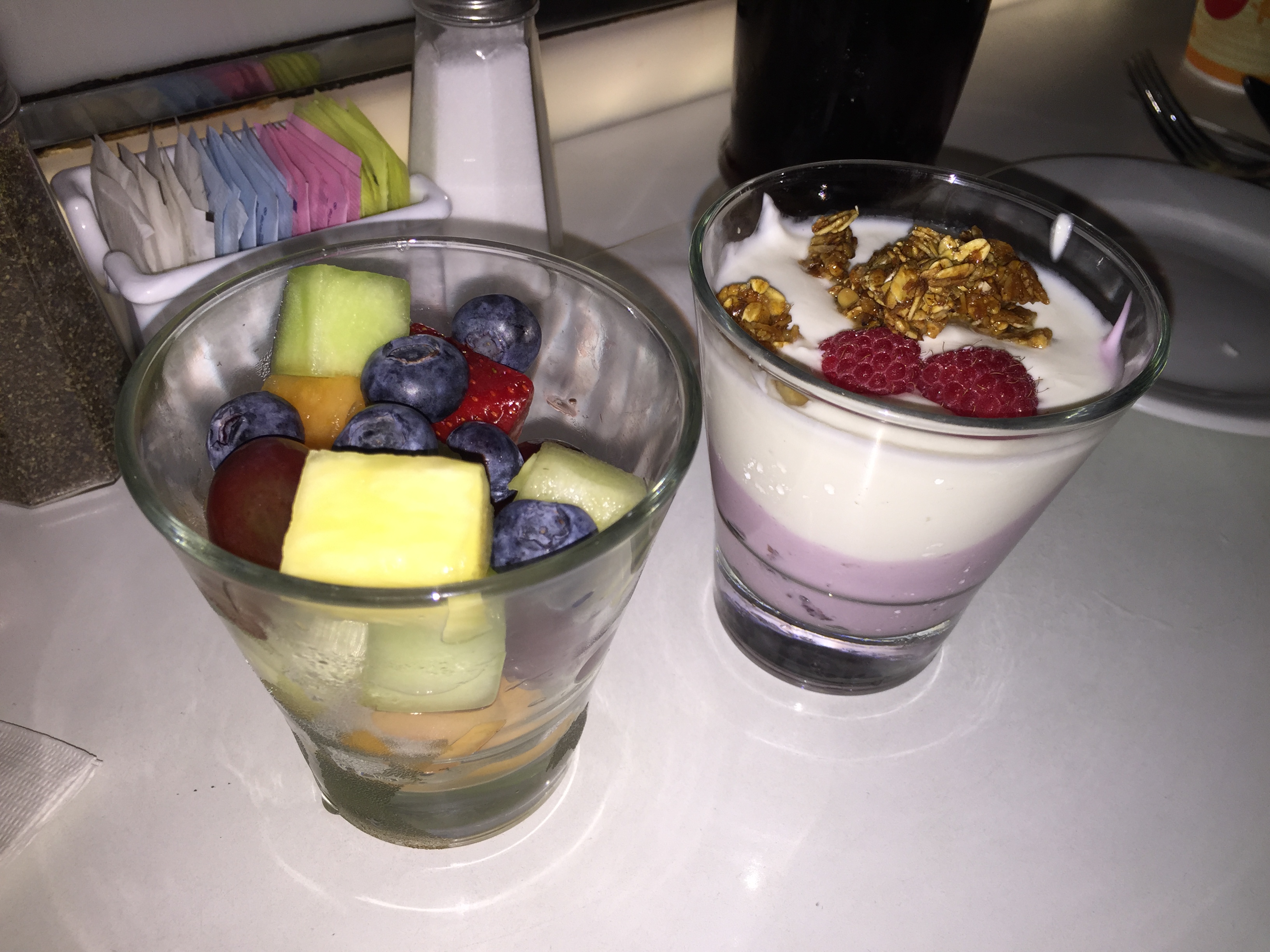 The breakfast comes with a choice of a fresh fruit or yogurt cup — both, again, very similar to any other restaurant on property, but good none the less.