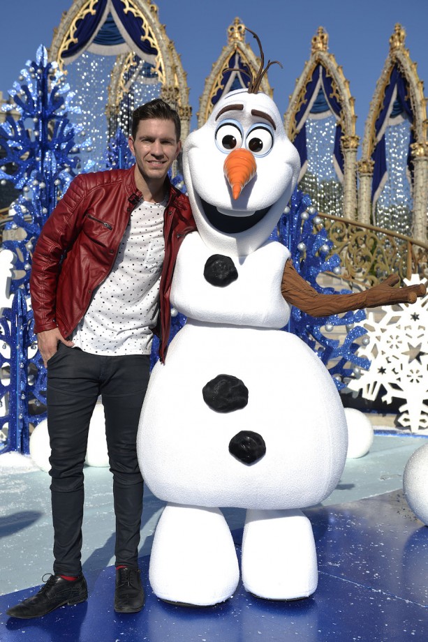 Singer Andy Grammer with Olaf at the Magic Kingdom