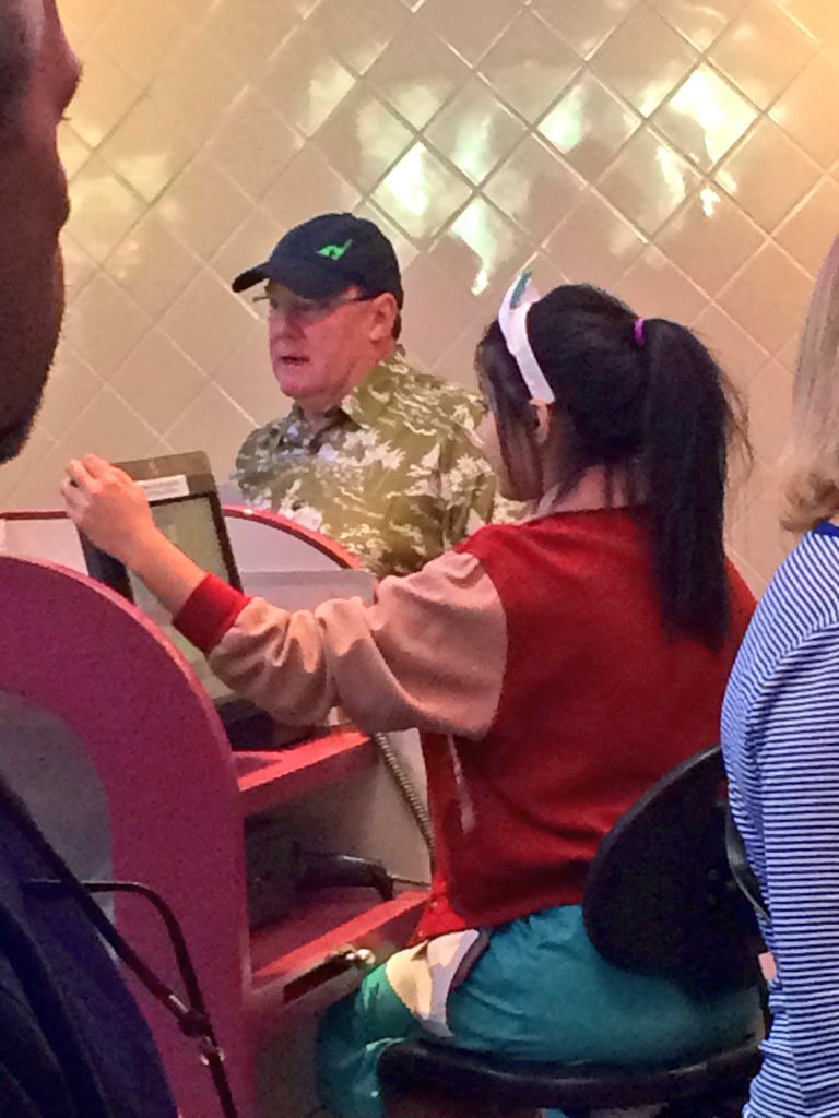 John Lasseter, chief creative officer of Pixar, Walt Disney Animation Studios, and DisneyToon Studios, getting breakfast at Flo's V8 Cafe in Disney California Adventure on the morning of December 6th.